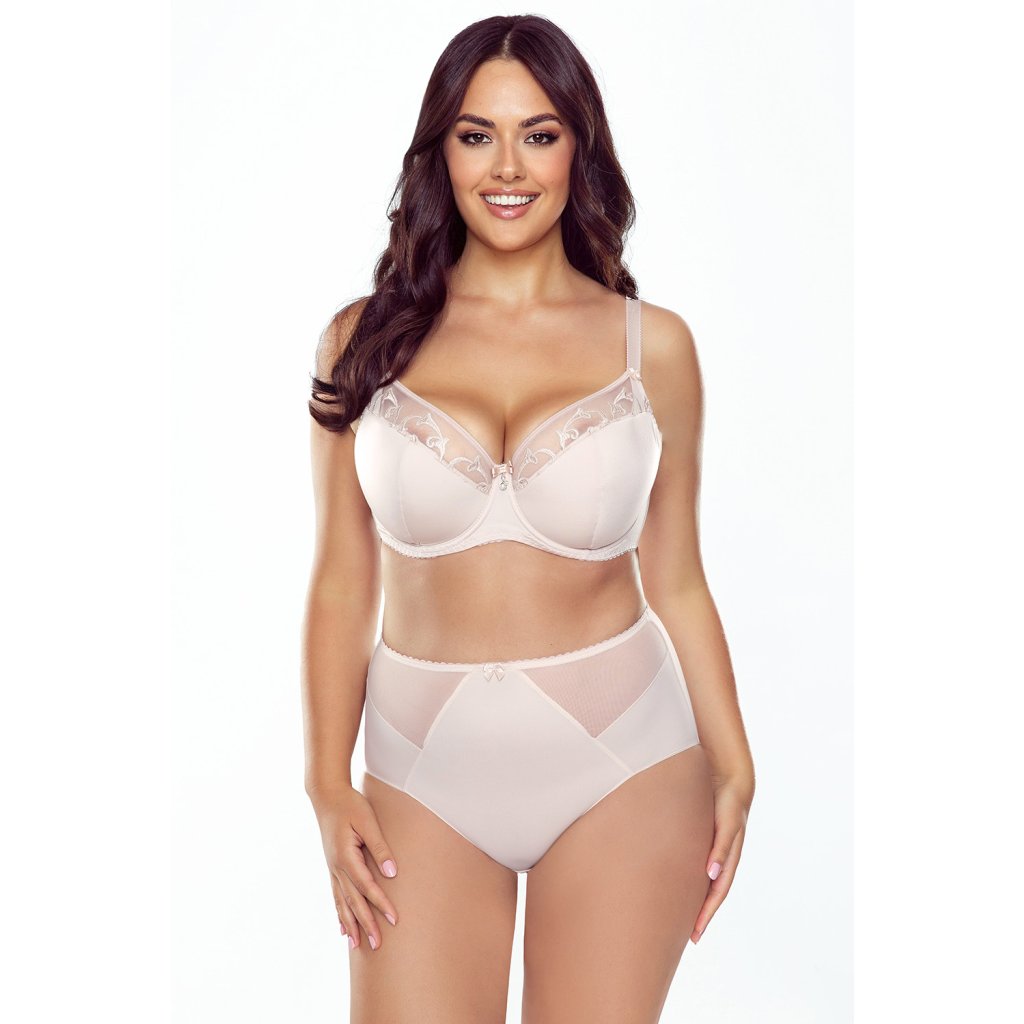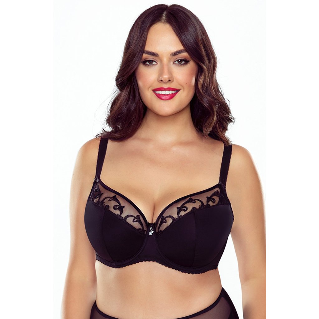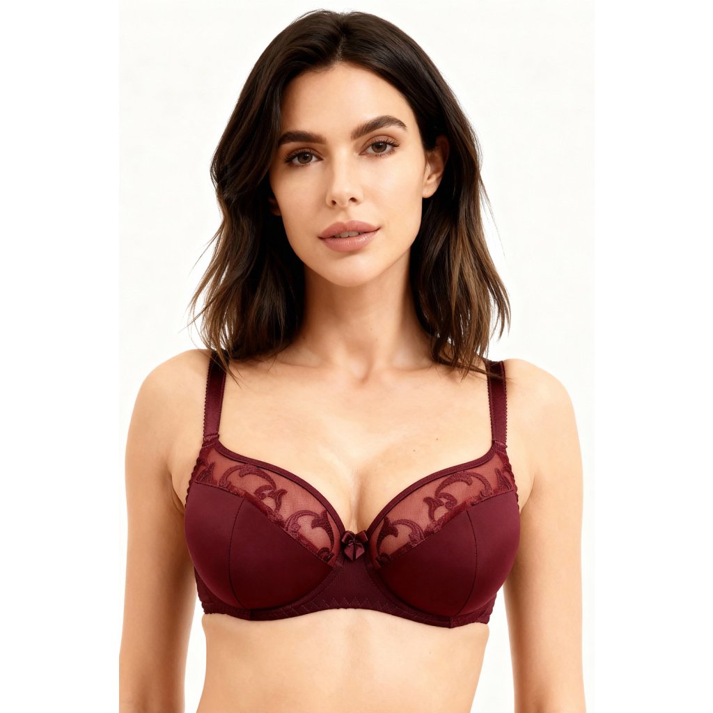 Klasická polovystužená podprsenka.- horná časť košíčkov je pokrytá jemnou výšivkou na sieťovine.