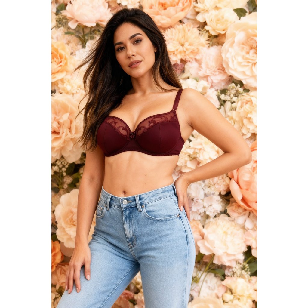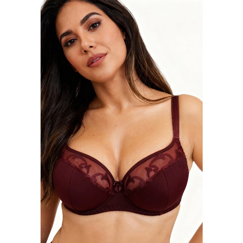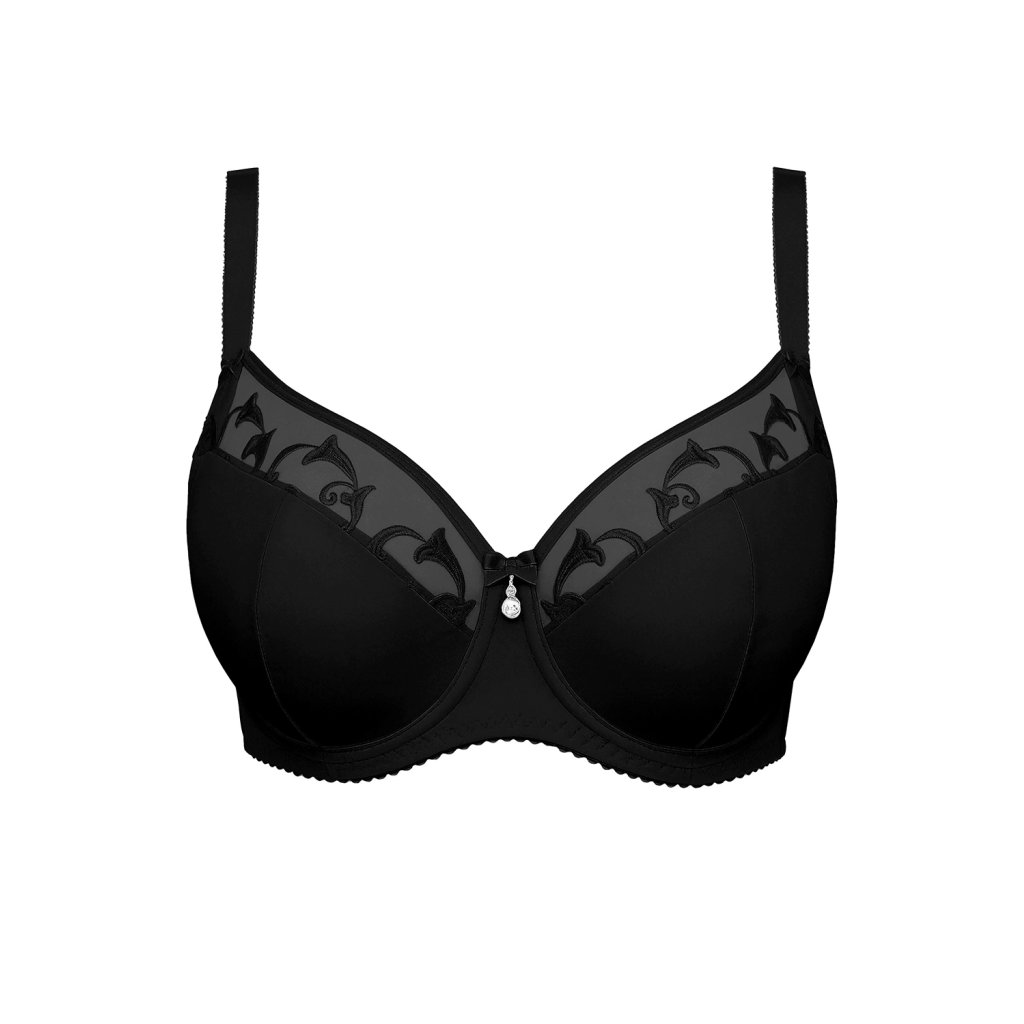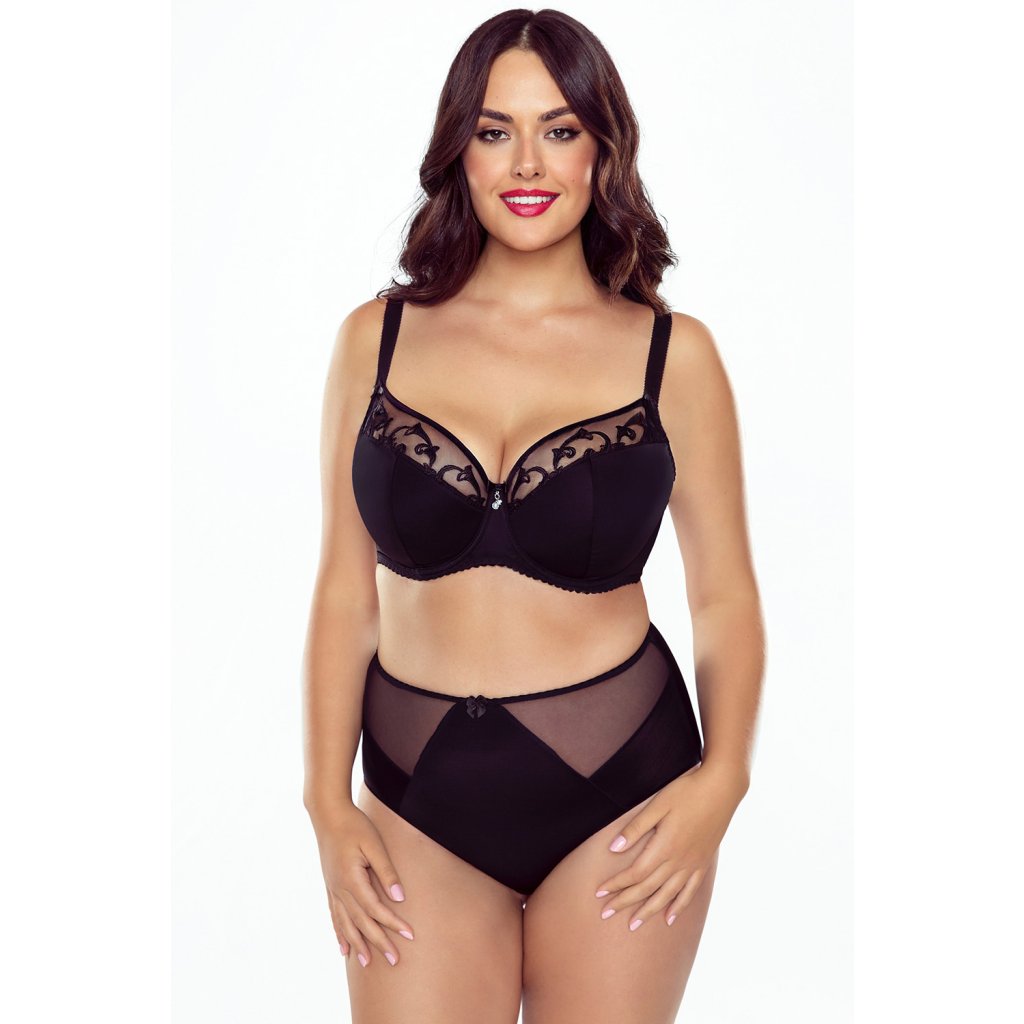 Klasická polovystužená podprsenka.- horná časť košíčkov je pokrytá jemnou výšivkou na sieťovine.