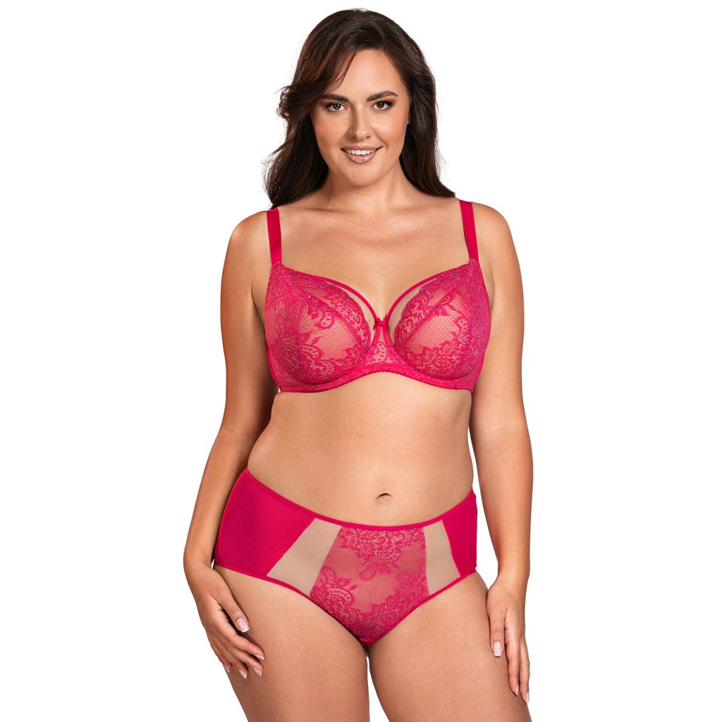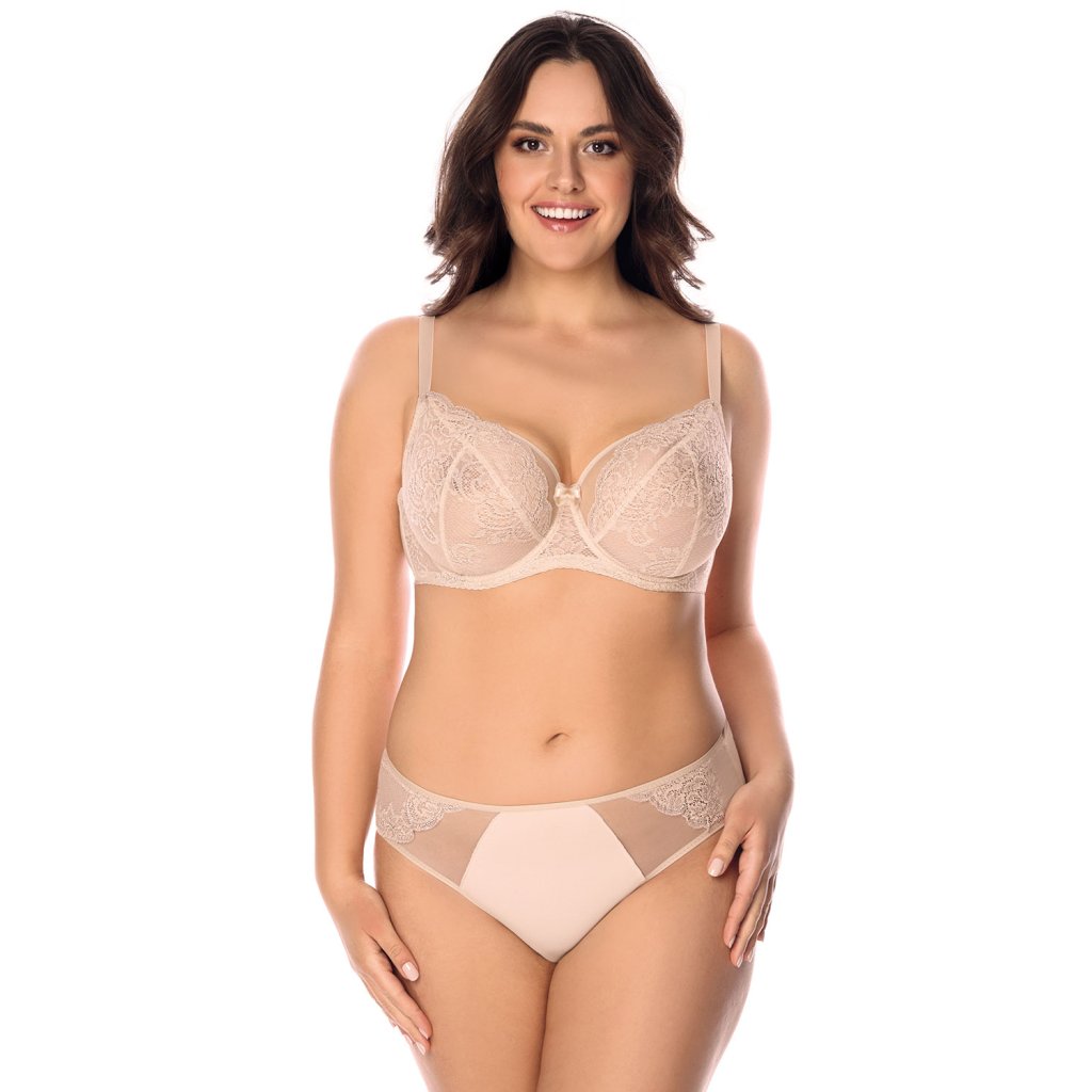 - košíčky, mostík a boky z kvetinovej lesklej čipky.