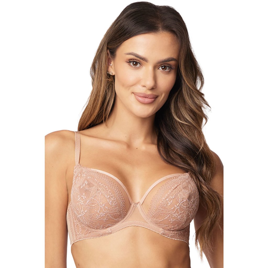 Elegantná nevystužená podprsenka.- šálky z béžovej sieťoviny