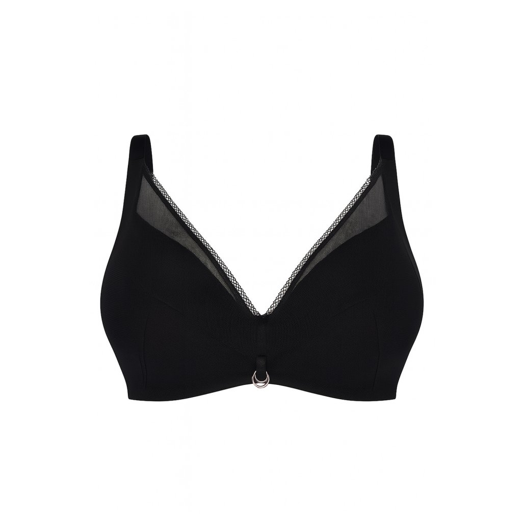 Dámska nevystužená podprsenka v čiernej farbe.- košíčky zo stabilnej tkaniny, ktorá dokonale podopiera poprsie