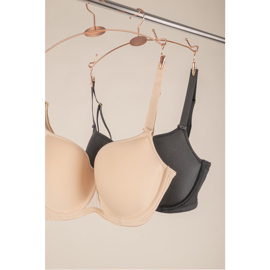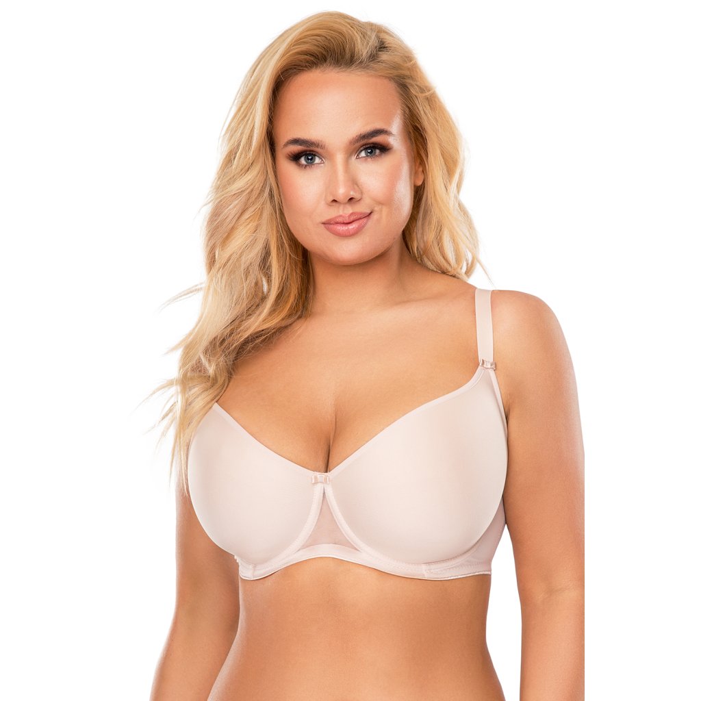 Hladká podprsenka s vystuženými košíčkami v jemnej, ženskej béžovej farbe.- ergonomický tvar košíčkov dokonale podopiera poprsie