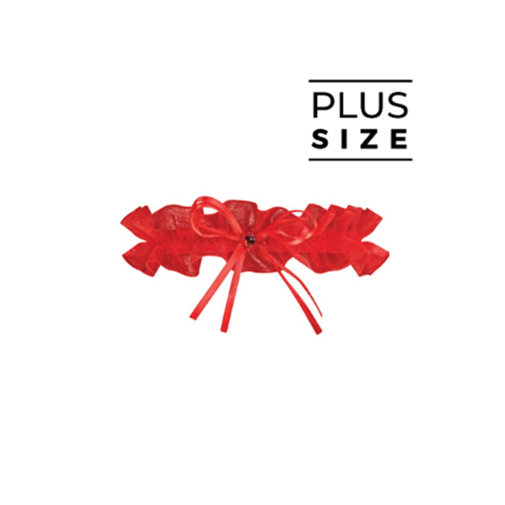 Červené, pútavé podväzky Plus Size z jemnej vrstvy pokrčeného tylu. Jeho stred zdobí jemná mašlička a krištáľové očko. Toto je návrh na ples. Pri tanci sa nešmýka vďaka silikónovému pásu na spodnej strane.Zloženie: 100% polyester