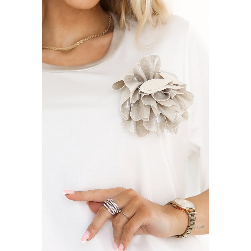 Pohodlná blúzka s kvetinovou aplikáciou na ramene - ecru 592-1