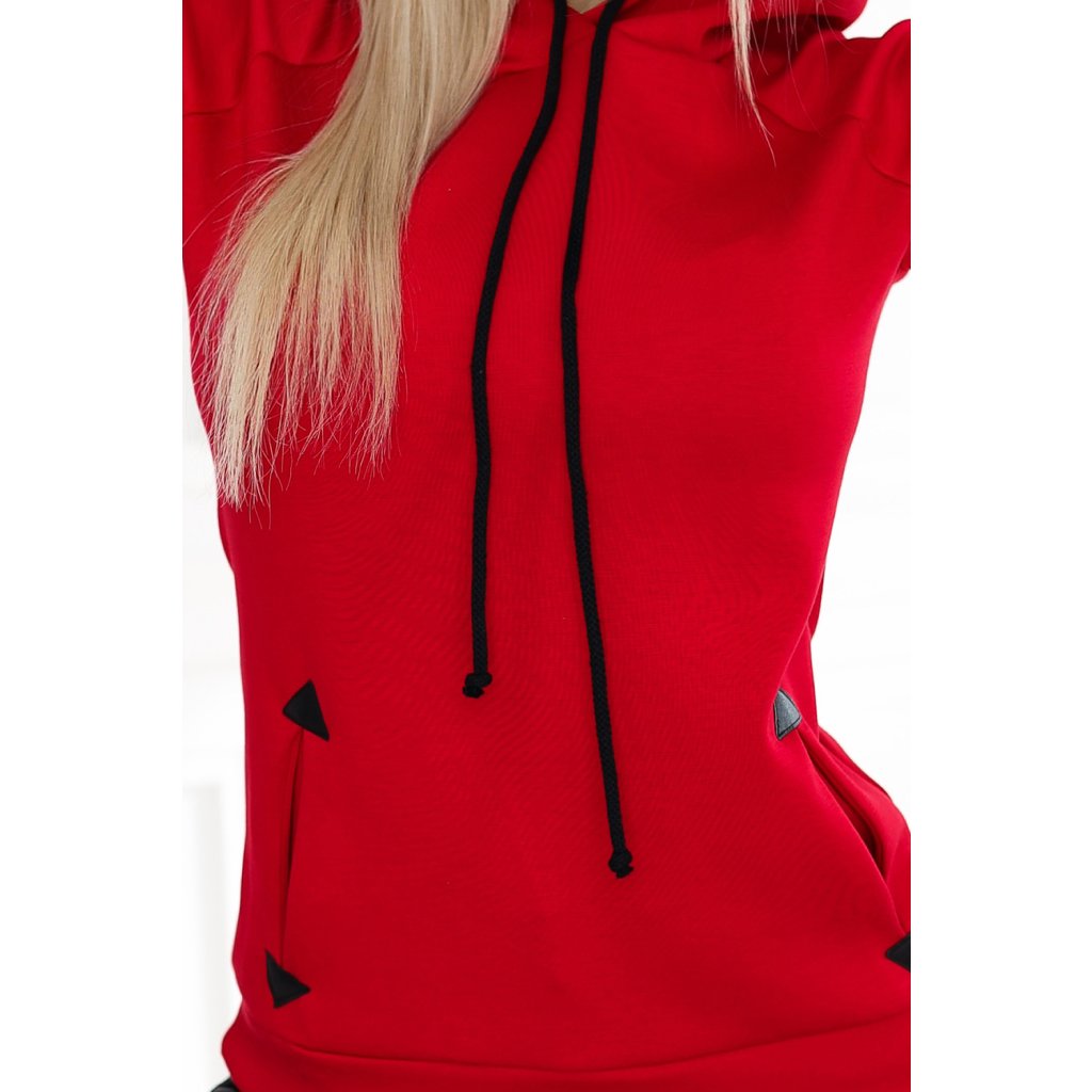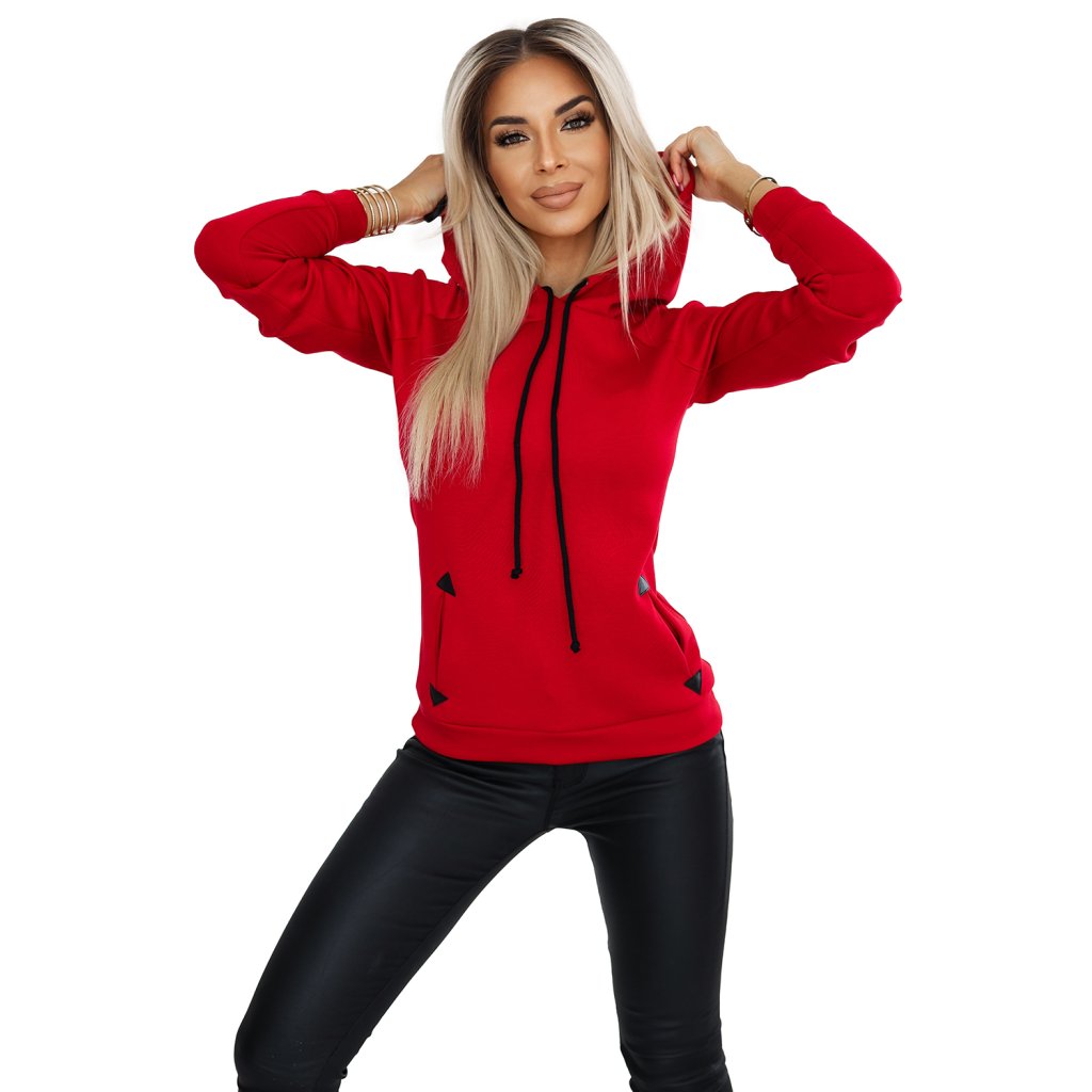 Pohodlná teplá mikina s kapucňou a vreckami - červená 262-2