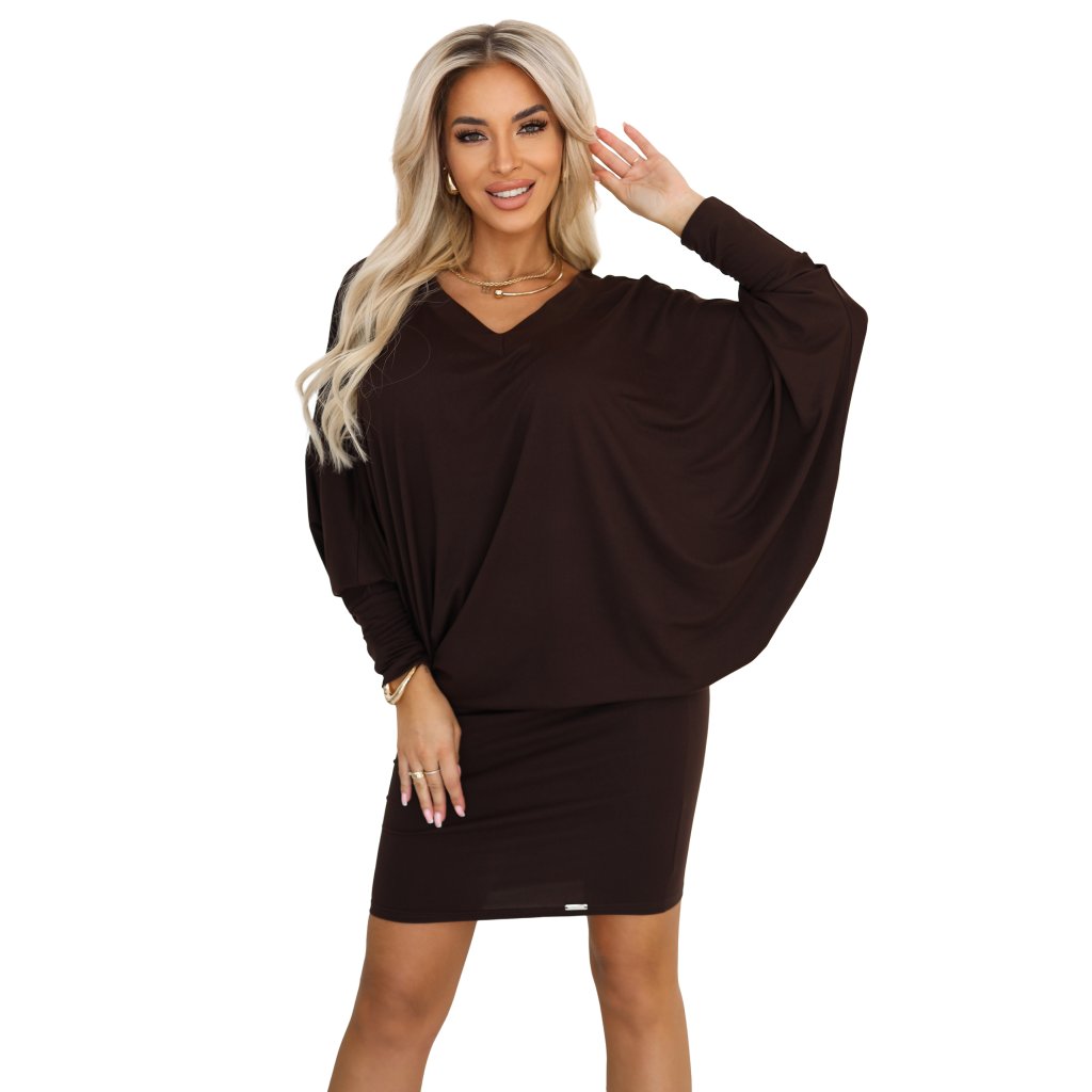 Nadmerné šaty typu netopier - Moderné pohodlie v čokoládovej farbe.