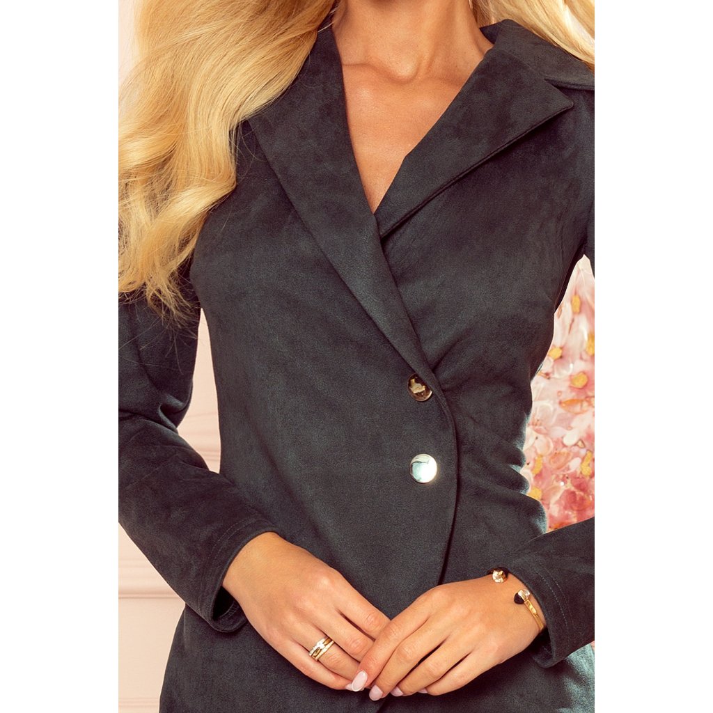 Predpokladané šaty s gombíkmi a golierom - zelená. Vyrobené z teplého semišového materiálu (95% polyester, 5% elastan). Značka Numoco. Poľská produkcia.