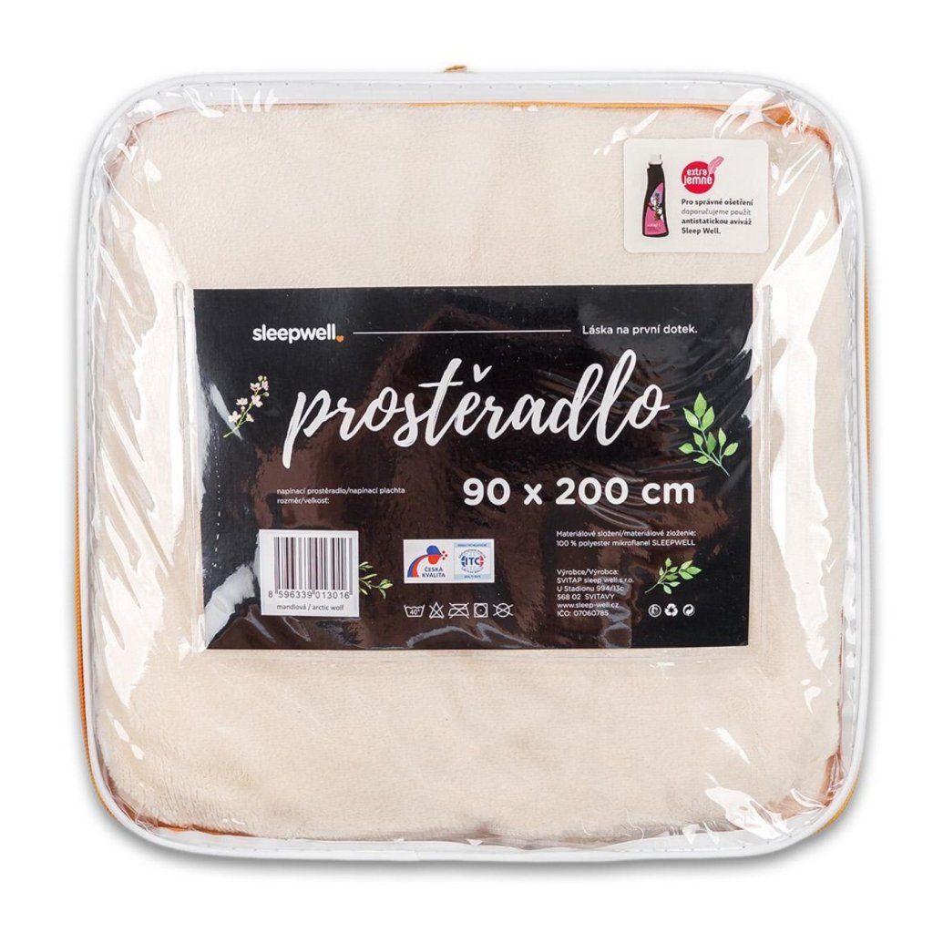 Mikroflanelové prestieradlo značky SLEEP WELL® v jemnej mandľovej farbe je mimoriadne hebké, hrejivé a príjemné na dotyk. Husto pletený materiál zaisťuje vysoký komfort a je vhodný aj pre alergikov – neprepúšťa peľ ani roztoče.
