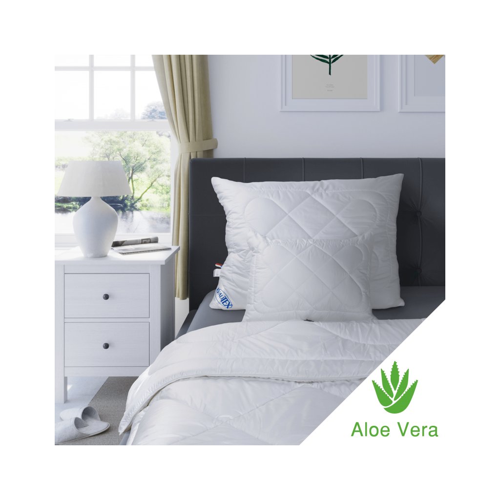 - Prikrývky a vankúše Aloe Vera sú k dispozícii len v bielej farbe a sú vhodné pre alergikov.