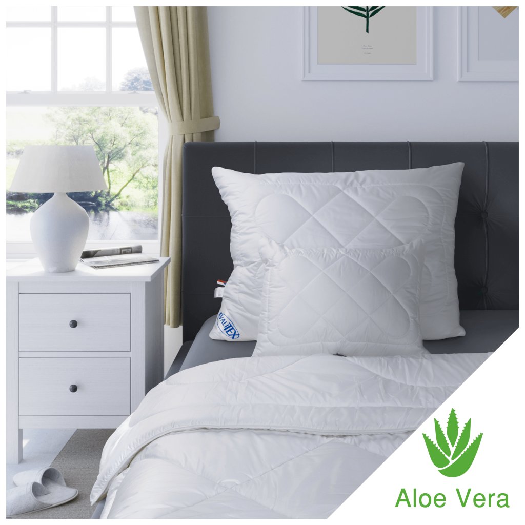 - Prikrývky a vankúše Aloe Vera sú k dispozícii len v bielej farbe a sú vhodné pre alergikov.