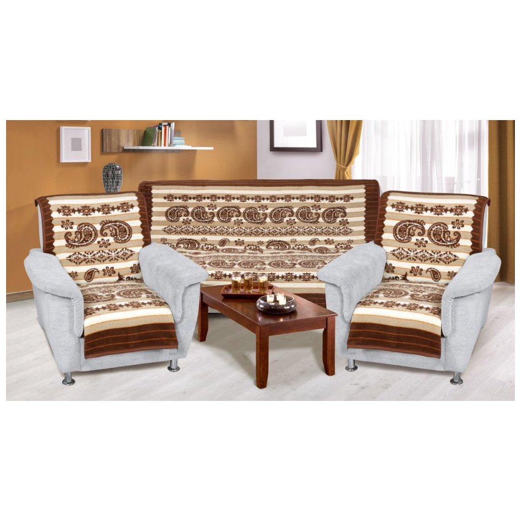 Prikrývka vzorovaná na sedaciu súpravu 3+1+1 béžový kašmír