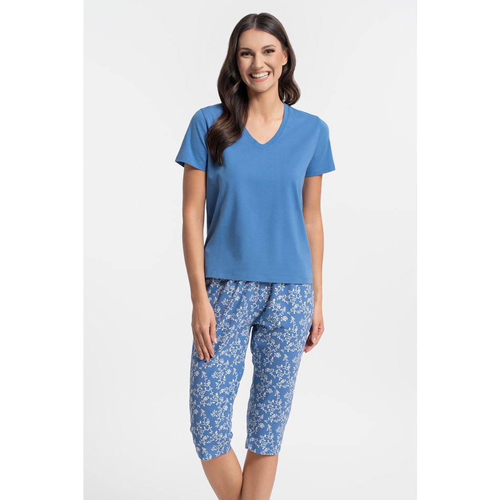 Dámska pyžamová súprava Moraj PDD3600-004 obsahuje top s krátkym rukávom a výstrihom do V a trojštvrťové nohavice. Pohodlný, voľný strih a vrecká umocňujú funkčnosť. Mäkký bavlnený úplet s elastanom je príjemný na dotyk a krásne splýva. Ideálne na teplé noci a každodenné pohodlie doma. Zloženie: 95% bavlna, 5% elastan.Dodatočné parametre