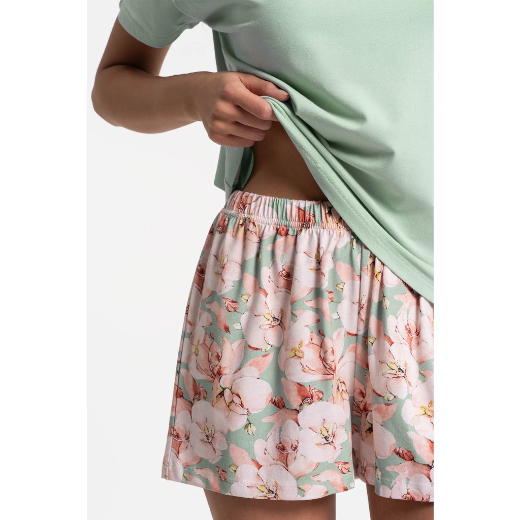 Dámska pyžamová súprava Moraj PDD4100-014 je dvojdielna súprava, ktorá obsahuje tričko s krátkym rukávom a okrúhlym výstrihom a kraťasy s elastickým pásom. Mäkký bavlnený úplet s prídavkom elastanu je príjemný na dotyk a umožňuje voľnosť pohybu. Jednoduchý a praktický strih je ideálny na každodenné nosenie a teplejšie noci. Tento pohodlný a ľahko prispôsobiteľný model je vhodný na každodenné nosenie. Zloženie: 95% bavlna, 5% elastan.Dodatočné parametre