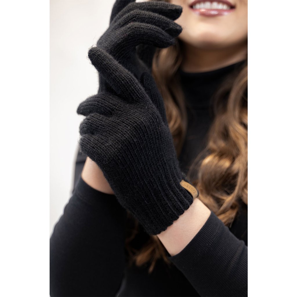 Štýlové rukavice s piatimi prstami.- vrchná časť je zakončená širokým lemom,