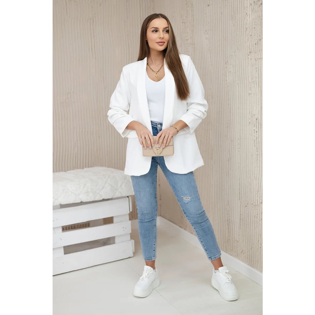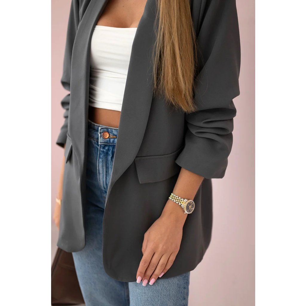 Predstavujeme vám elegantné sako. Sako bez gombíkov s prednými klopami. Tento model bude skvelou voľbou pre mnohé typy siluet a dodá každému štýlu ležérnu eleganciu. Je základom každého šatníka a štýlovým kúskom na špeciálne príležitosti - pre každé ročné obdobie a každú príležitosť. Sako je vyrobené z vysoko kvalitného materiálu. Sako má podšívku.Veľkosť je univerzálna a je vhodná pre dámske veľkosti S, M a L.
