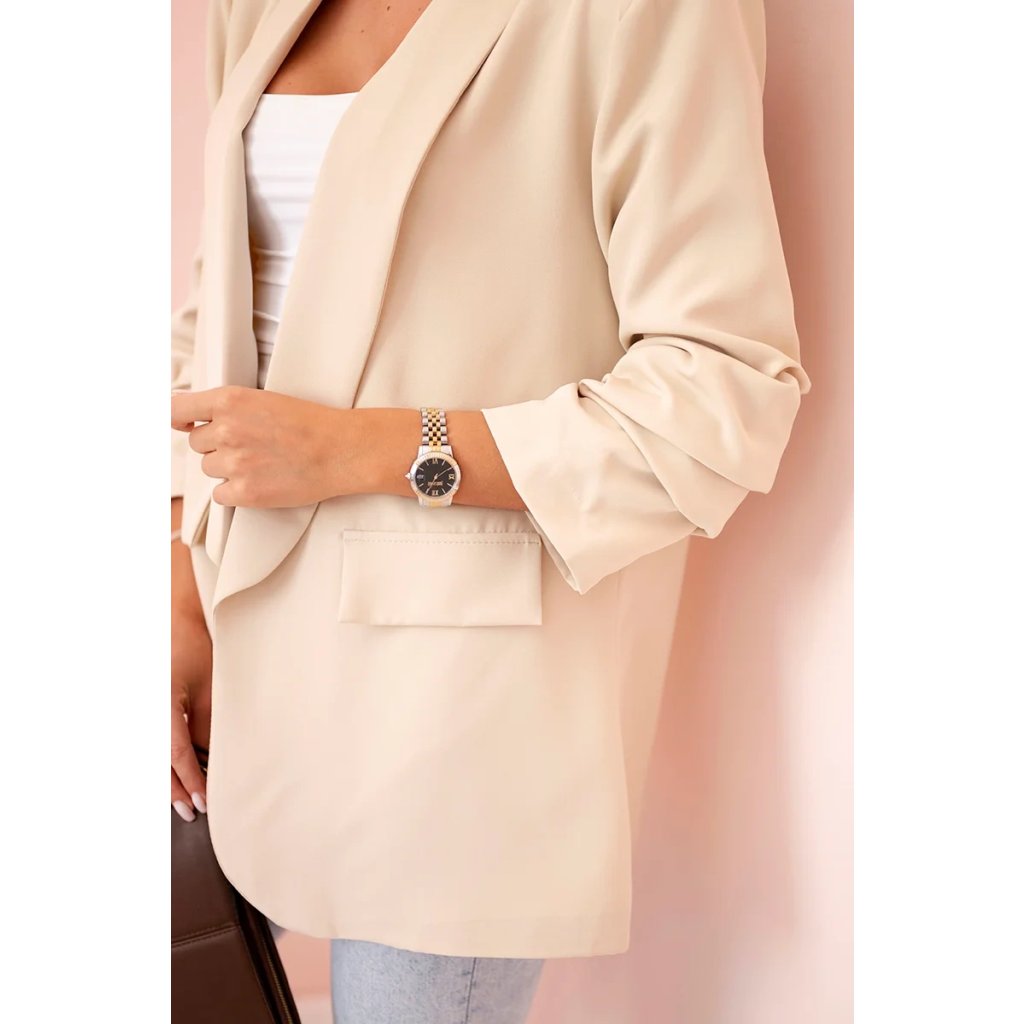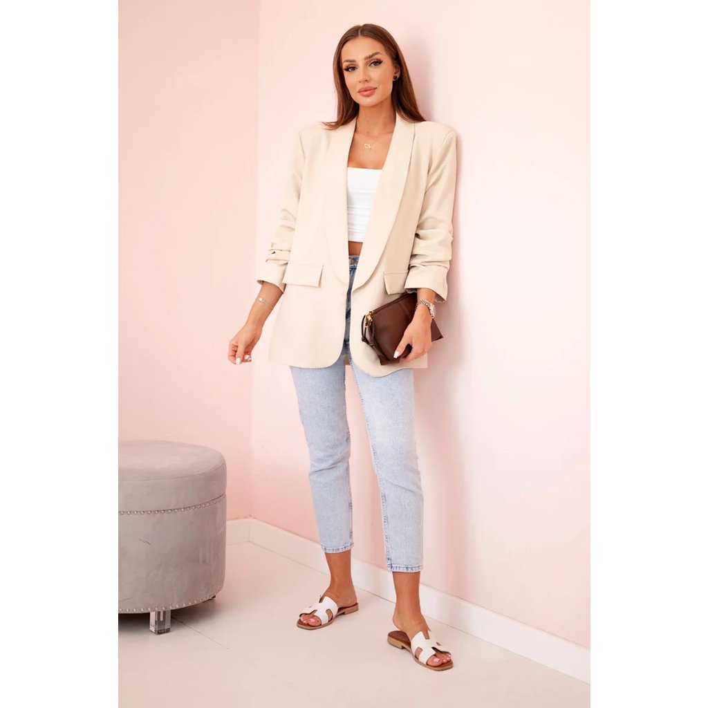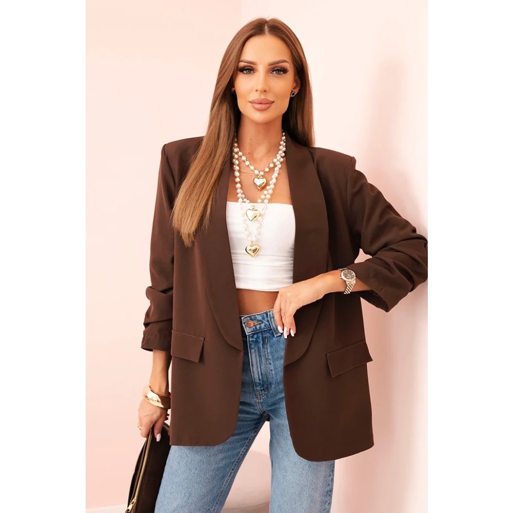 Predstavujeme vám elegantné sako. Sako bez gombíkov s prednými klopami. Tento model bude skvelou voľbou pre mnohé typy siluet a dodá každému štýlu ležérnu eleganciu. Je základom každého šatníka a štýlovým kúskom na špeciálne príležitosti - pre každé ročné obdobie a každú príležitosť. Sako je vyrobené z vysoko kvalitného materiálu. Sako má podšívku.Veľkosť je univerzálna a je vhodná pre dámske veľkosti S, M a L.