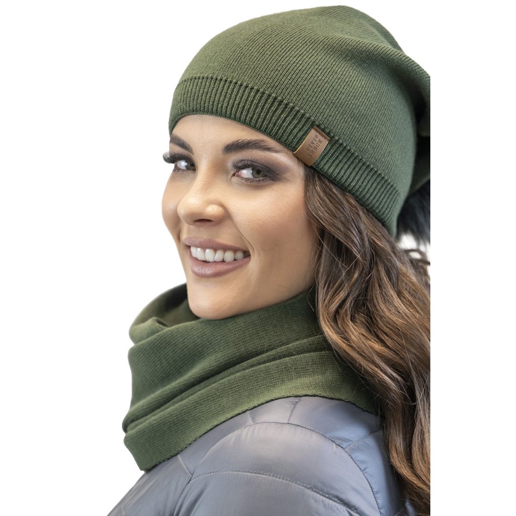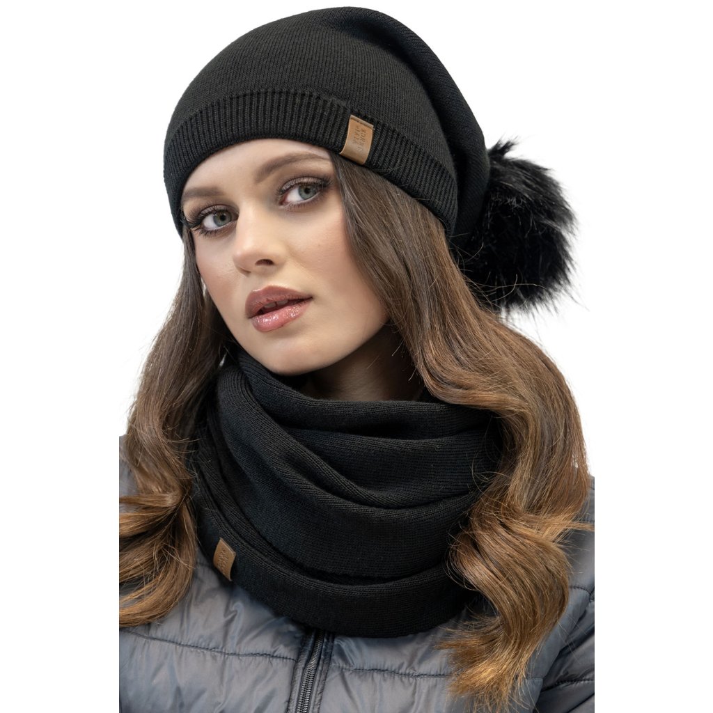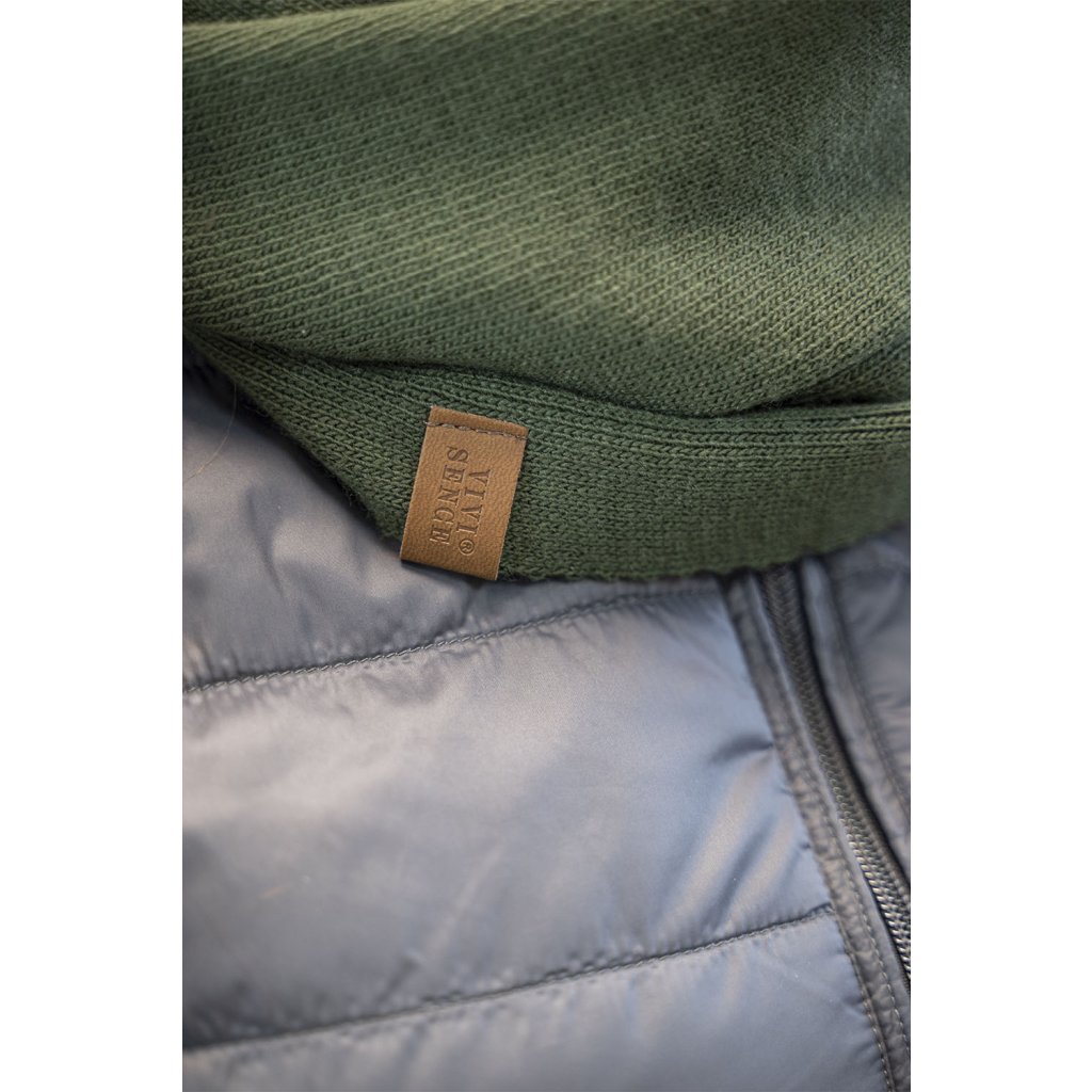 Šál z teplej priadze - dvakrát skladací. Nášivka z ekokože s logom Vivisence