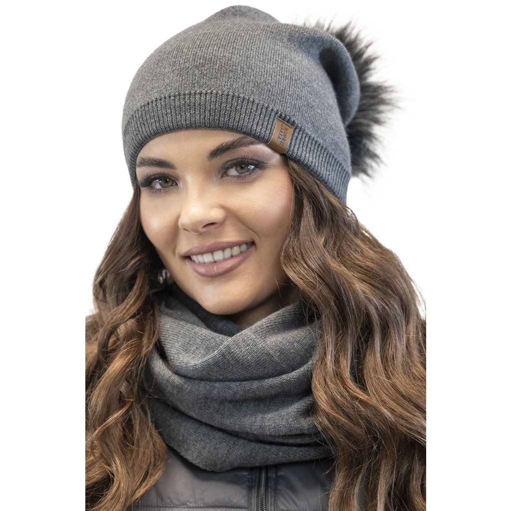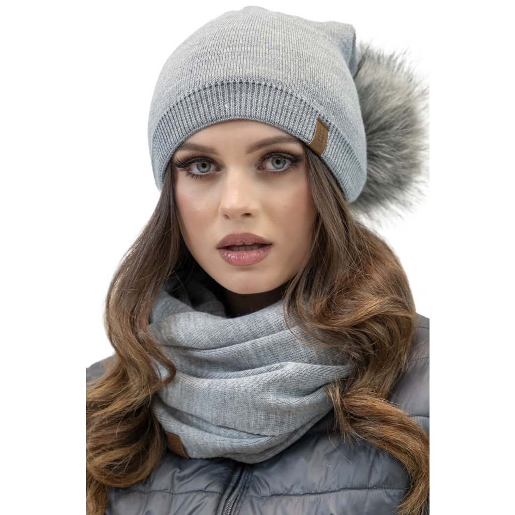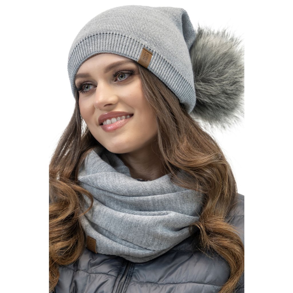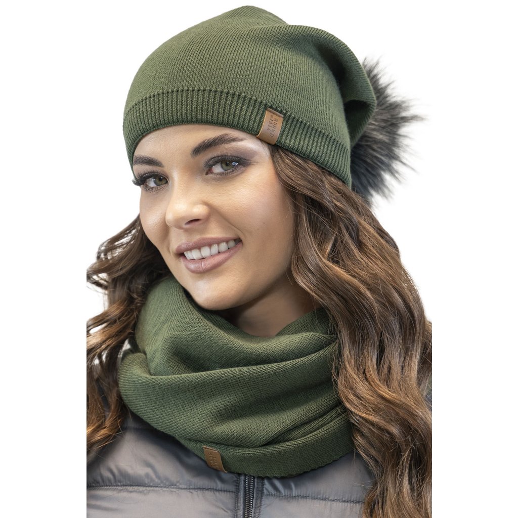 Šál z teplej priadze - dvakrát skladací. Nášivka z ekokože s logom Vivisence