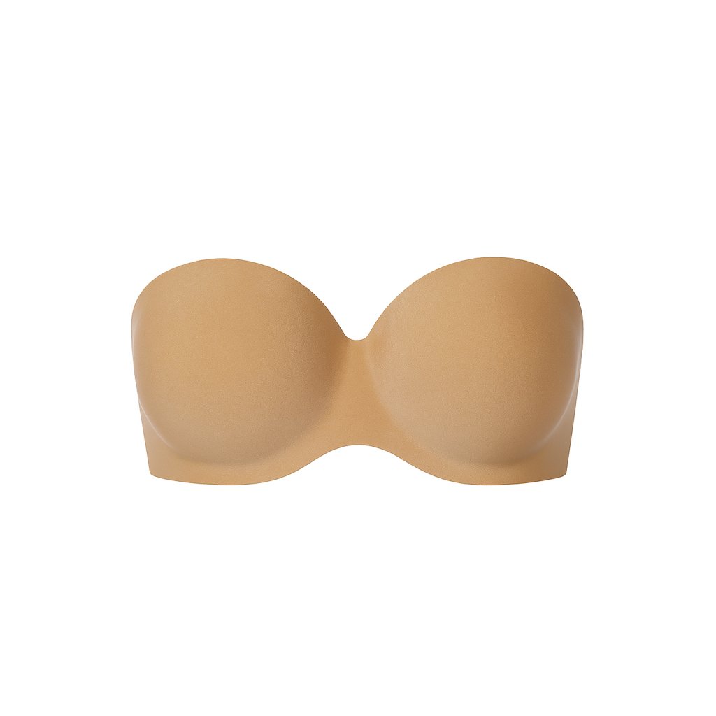 Ľahká samodržiaca podprsenka v béžovej farbe.- strih bardotka