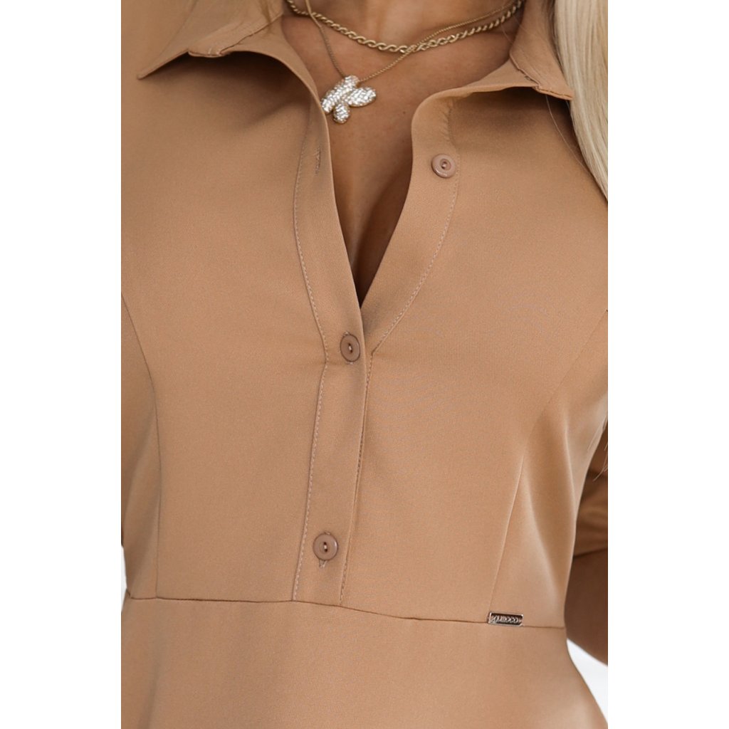 Košeľové šaty s golierom a opaskom v páse, farba mocha mousse. Poľský výrobok. Značka Numoco.