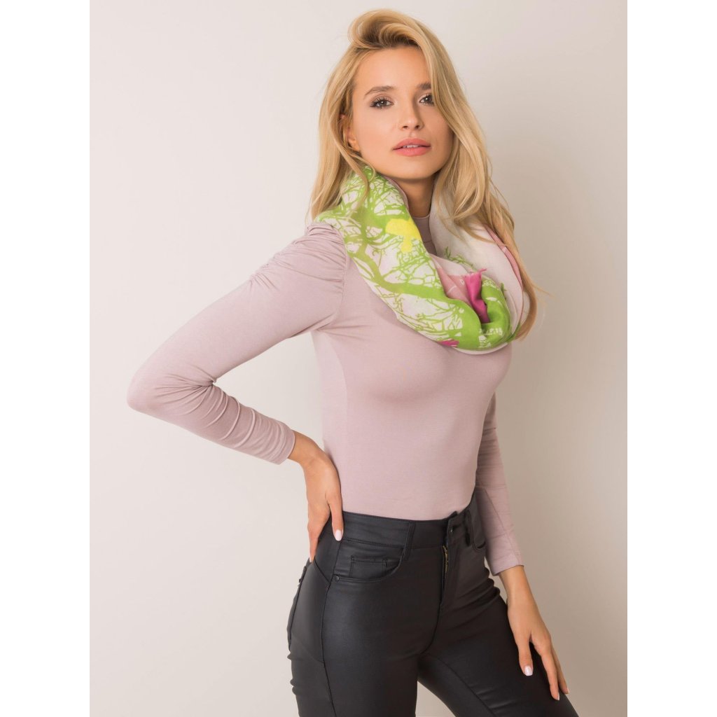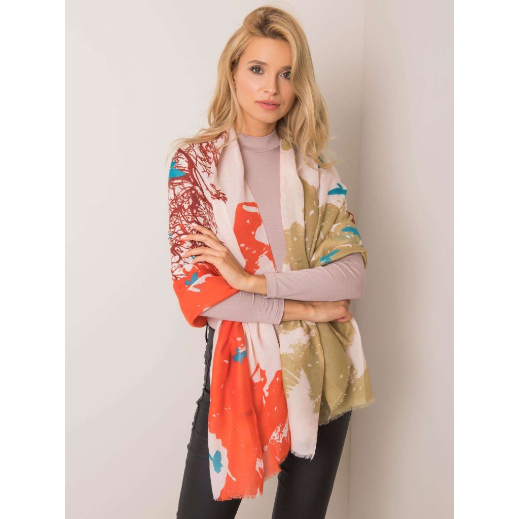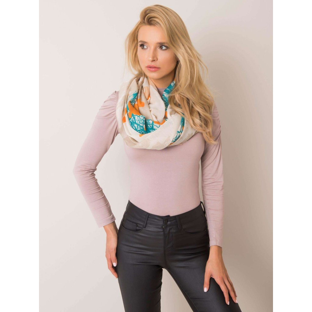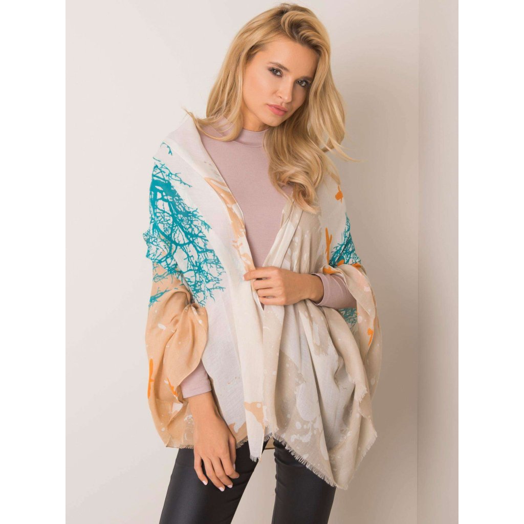 Béžovo-tyrkysová šatka s potlačou.Zloženie materiálu: 100% viskózaPokyny pre starostlivosť: ručné pranieRozmery: cca 88 x 172 cm