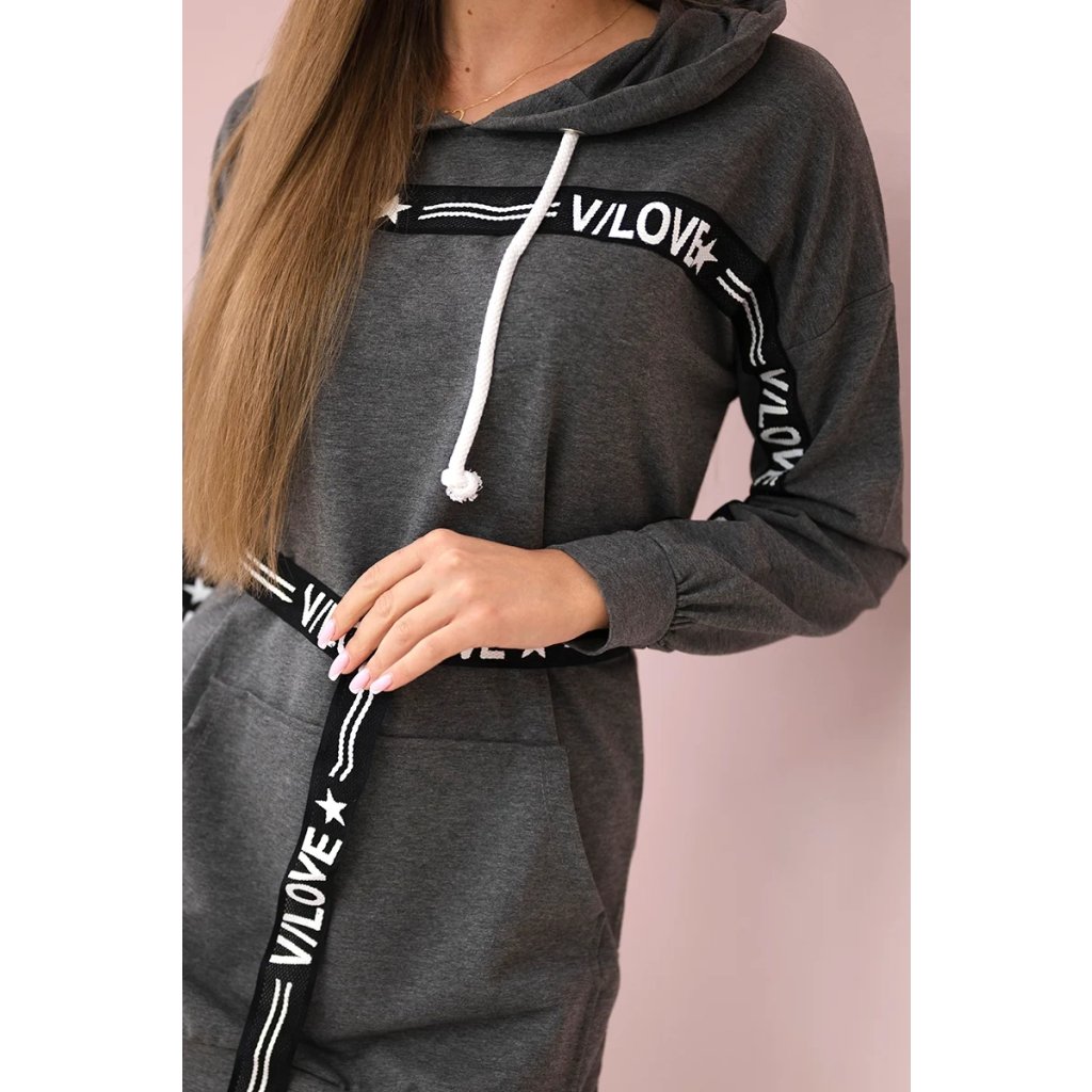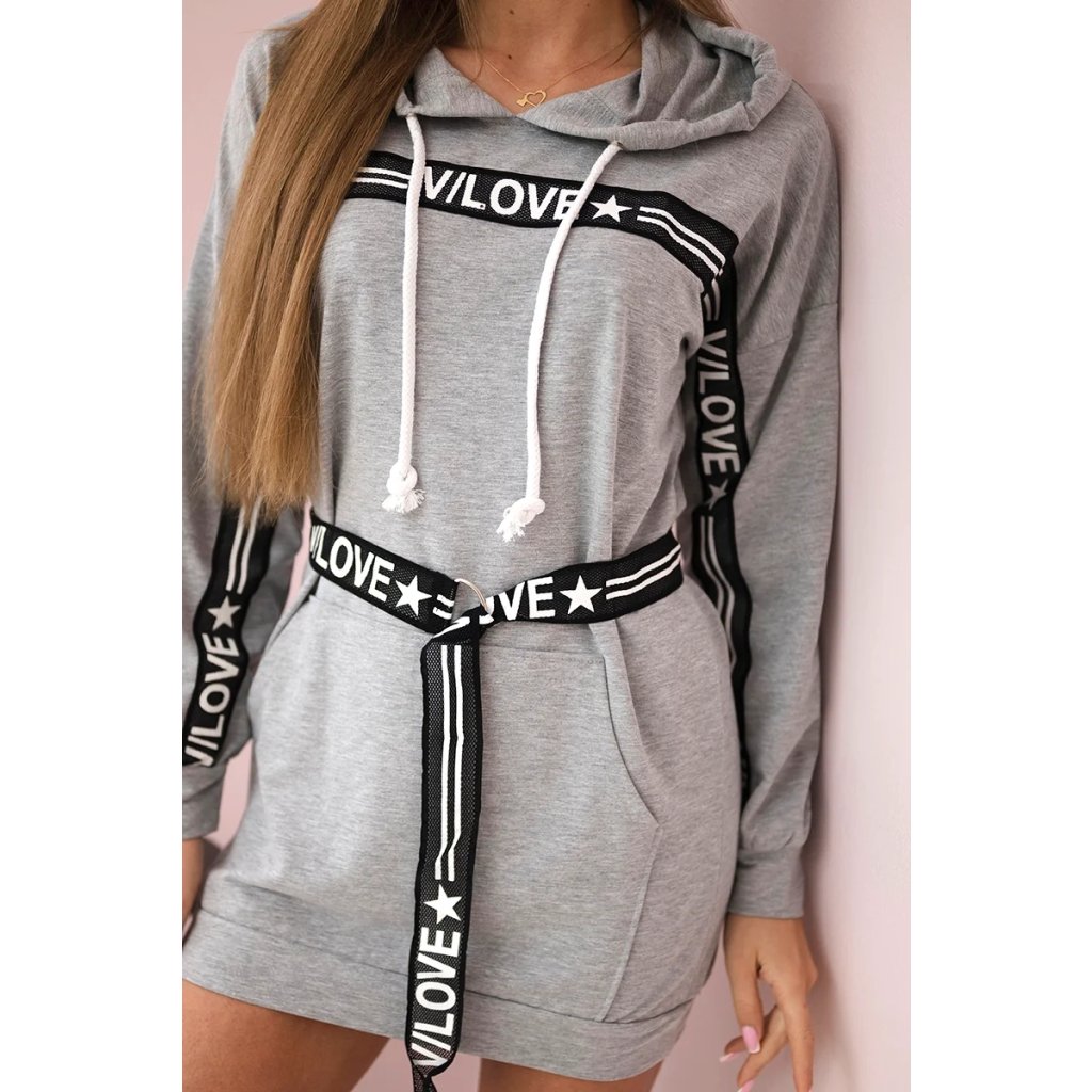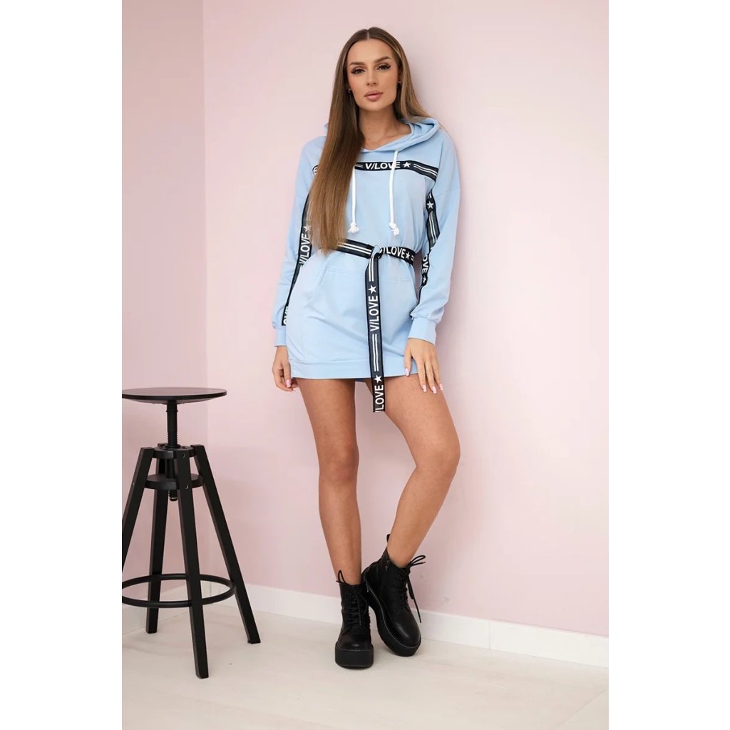 Predstavujeme vám pohodlné šaty. Šaty majú ozdobnú stuhu s nápismi. Šaty s kapucňou a predným vreckom. Šaty sú vyrobené z kvalitného materiálu. Veľkosť je univerzálna a vyhovuje dámam, ktoré nosia veľkosť M, L alebo XL.