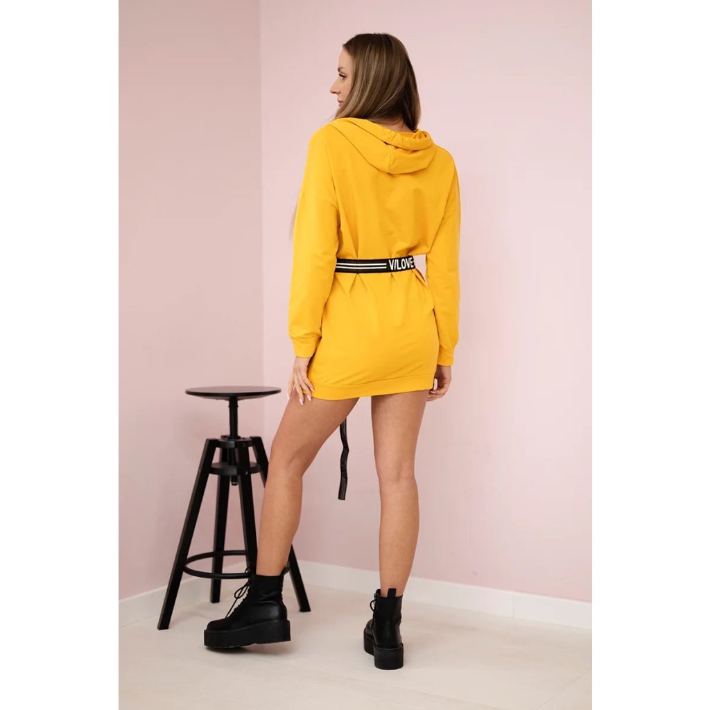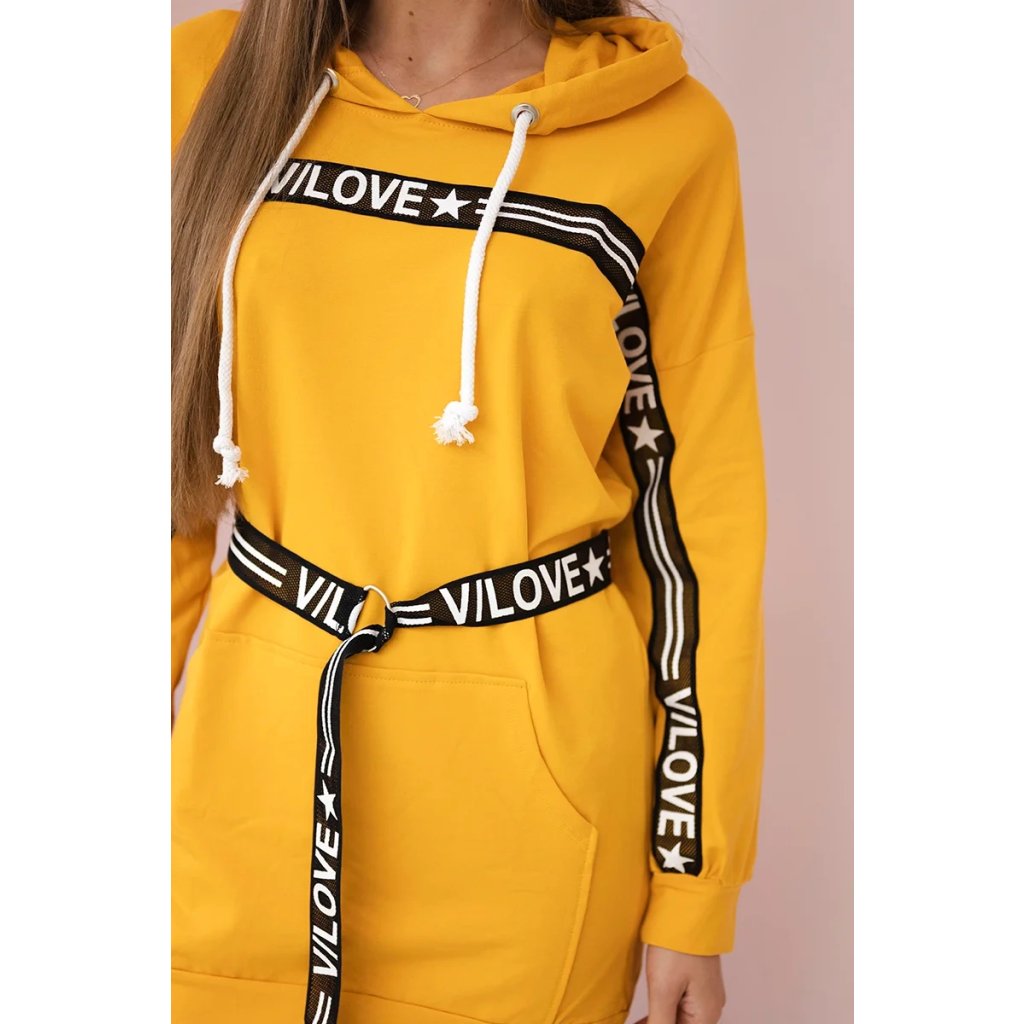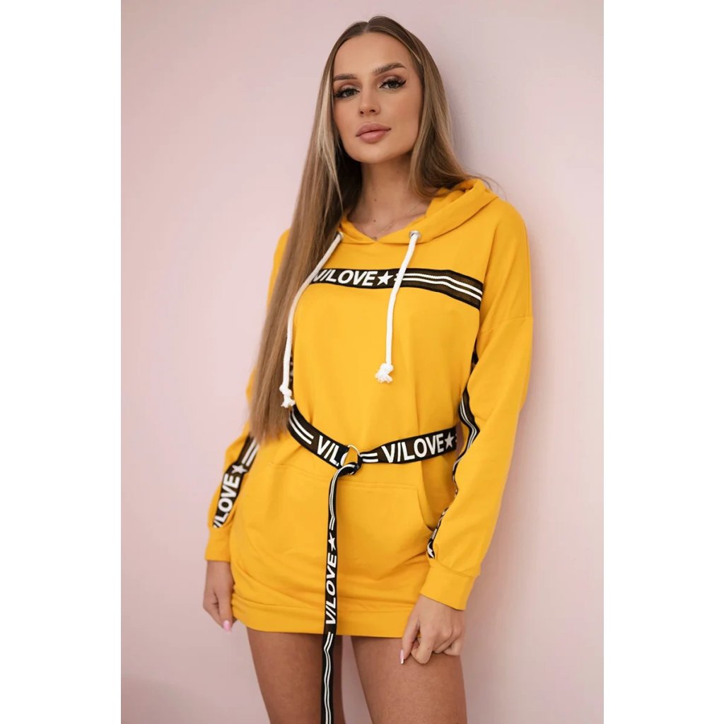 Predstavujeme vám pohodlné šaty. Šaty majú ozdobnú stuhu s nápismi. Šaty s kapucňou a predným vreckom. Šaty sú vyrobené z kvalitného materiálu. Veľkosť je univerzálna a vyhovuje dámam, ktoré nosia veľkosť M, L alebo XL.