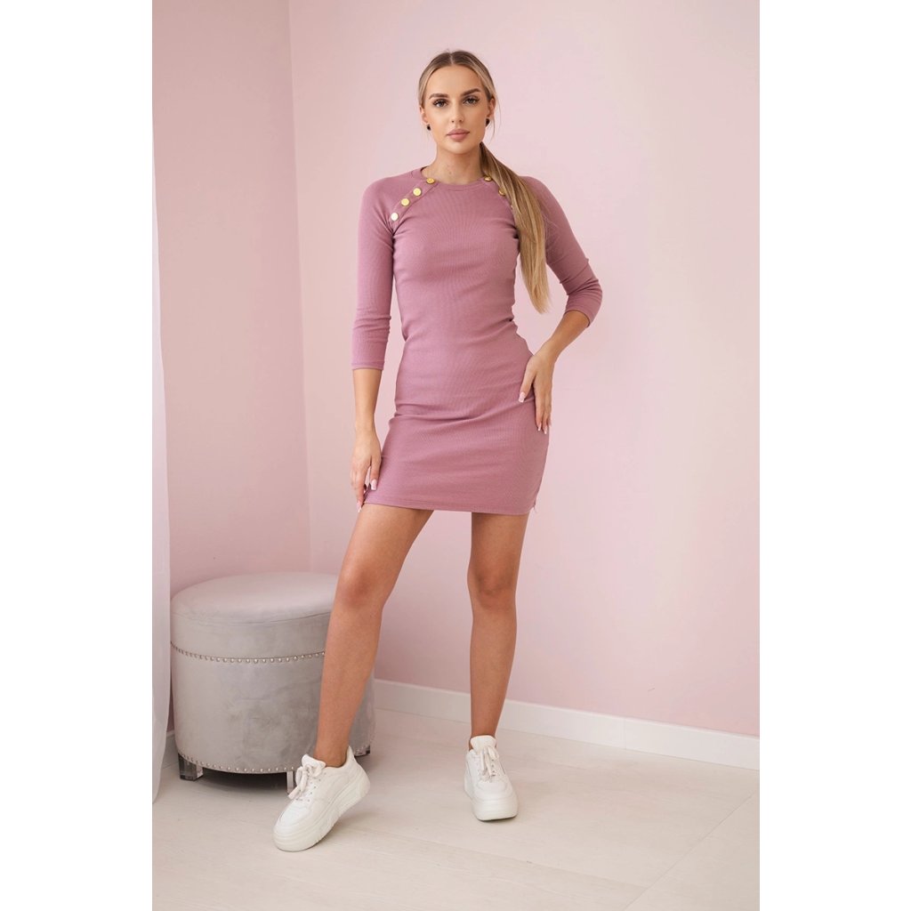 Predstavujeme vám módne šaty. Priliehavé šaty s dvoma radmi ozdobných gombíkov na prednej strane. Rebrovaný, pružný materiál. Vynikajúca ponuka pre všetky dámy. Šaty sú vyrobené z kvalitného materiálu.