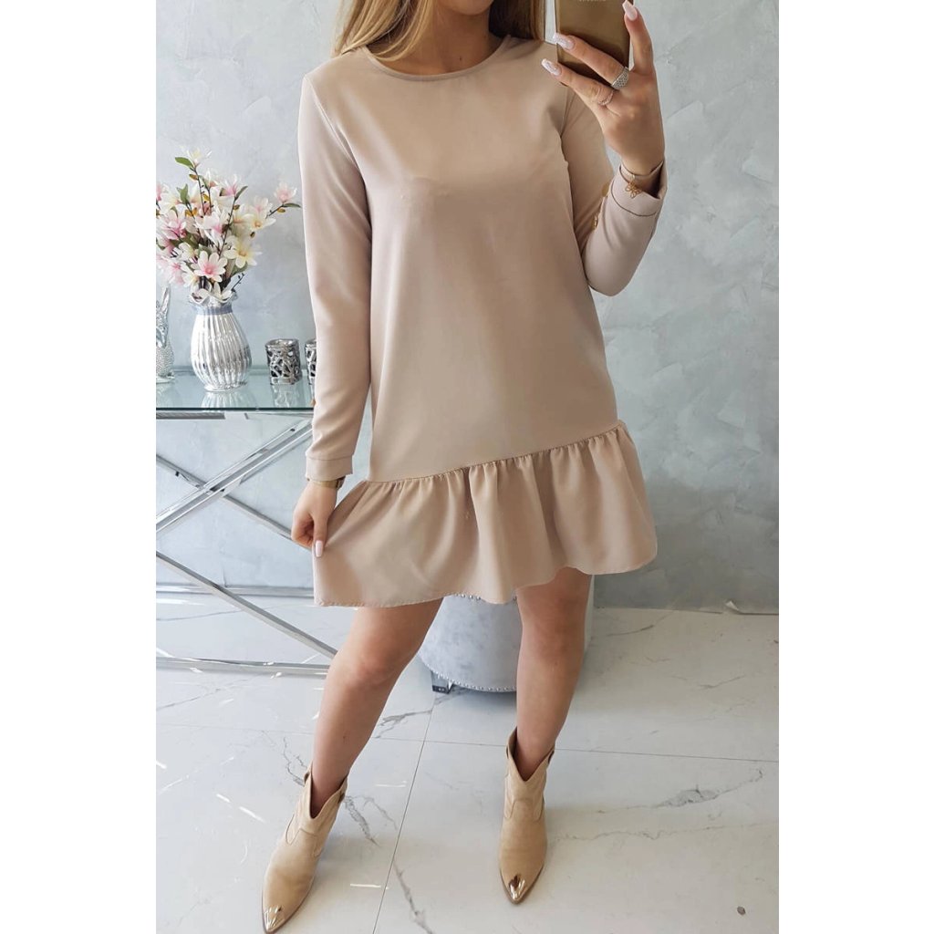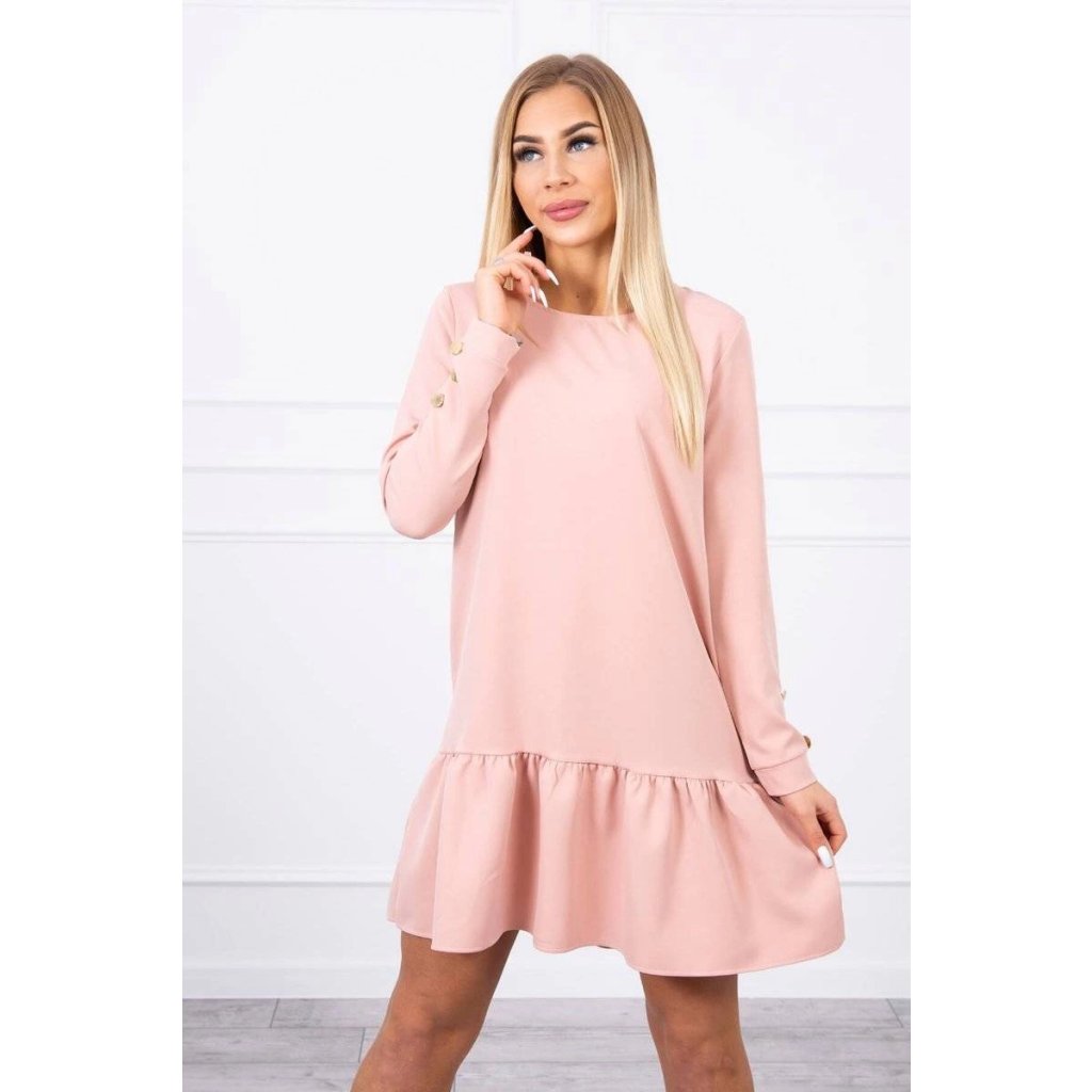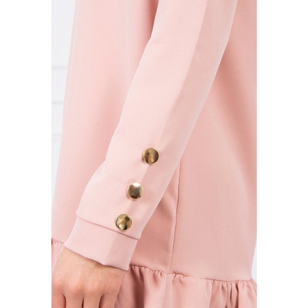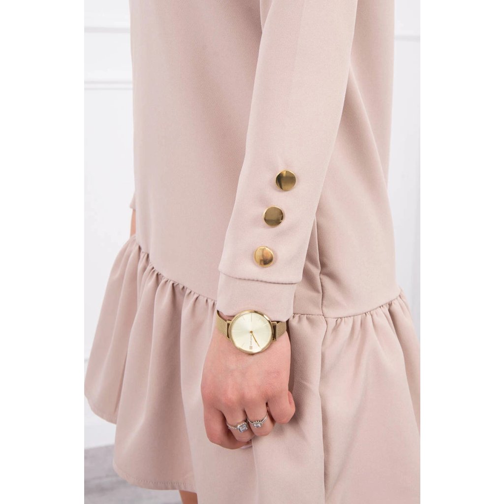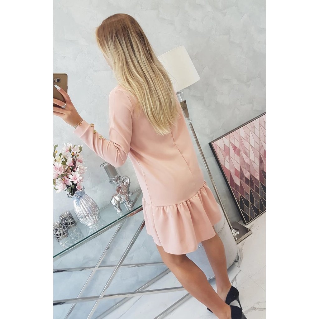 Predstavujeme vám elegantné šaty. Šaty s volánom. Šaty s dlhými rukávmi a ozdobnými zlatými gombíkmi na rukávoch. Šaty sú vyrobené z kvalitného materiálu. Veľkosť je univerzálna a vyhovuje dámam, ktoré nosia veľkosť S, M alebo L.