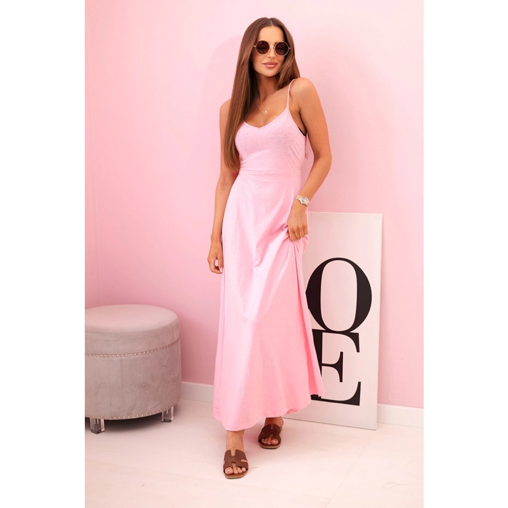 Tieto dámske šaty na ramienka sú ideálnou voľbou na teplé dni! Ľahký, vzdušný materiál a rozšírený spodný diel im dodávajú veľmi ženský a elegantný vzhľad. Skvele sa hodia ako na bežné nosenie, tak aj na špeciálne príležitosti – letné oslavy, romantické prechádzky alebo dovolenky. Vďaka elastickému pásu sa skvele prispôsobia postave a zvýraznia ženské krivky, zatiaľ čo maxi dĺžka dodáva štýl a triedu. Tenké ramienka dodávajú jemnosť a materiál s prímesou elastanu zaisťuje pohodlie po celý deň.