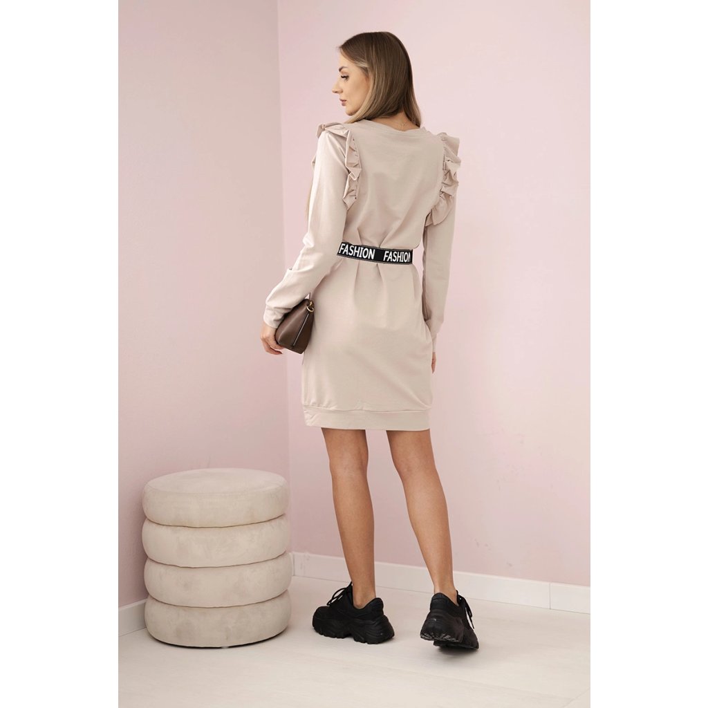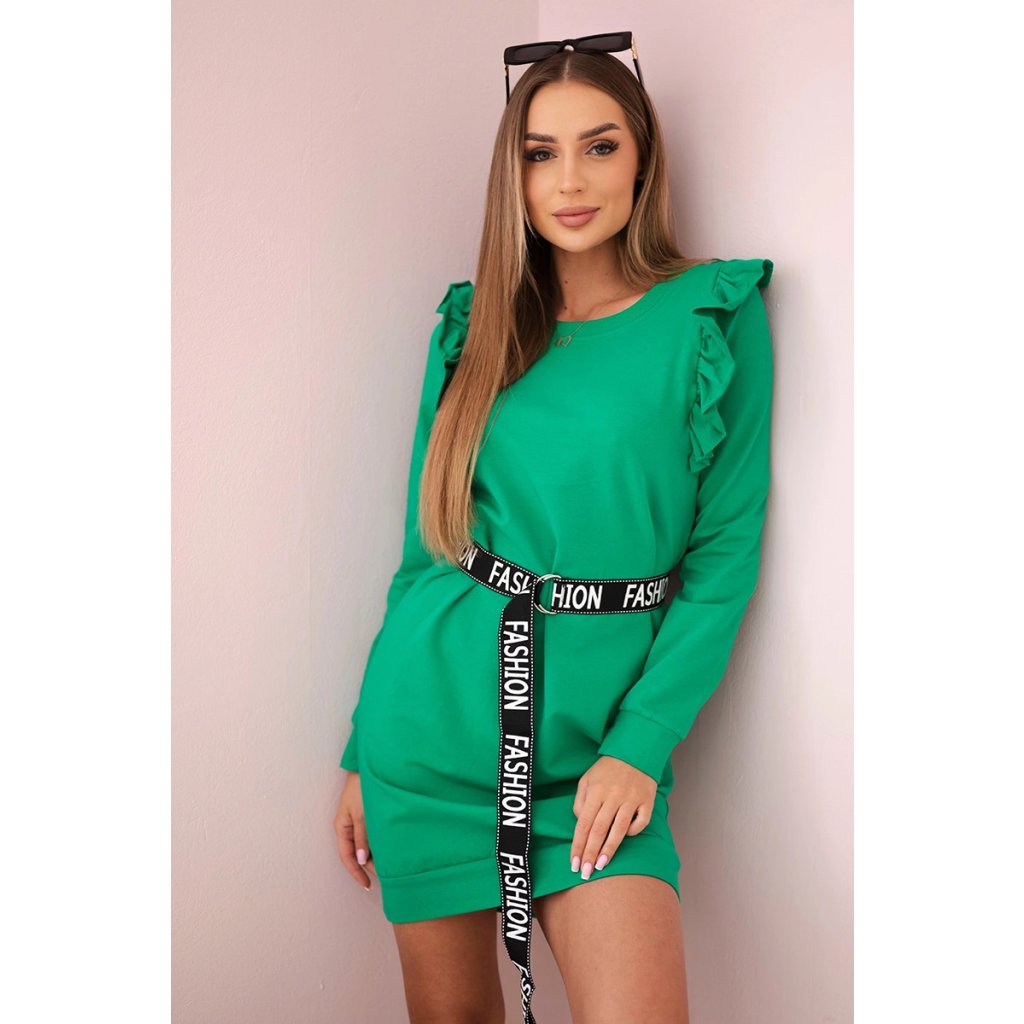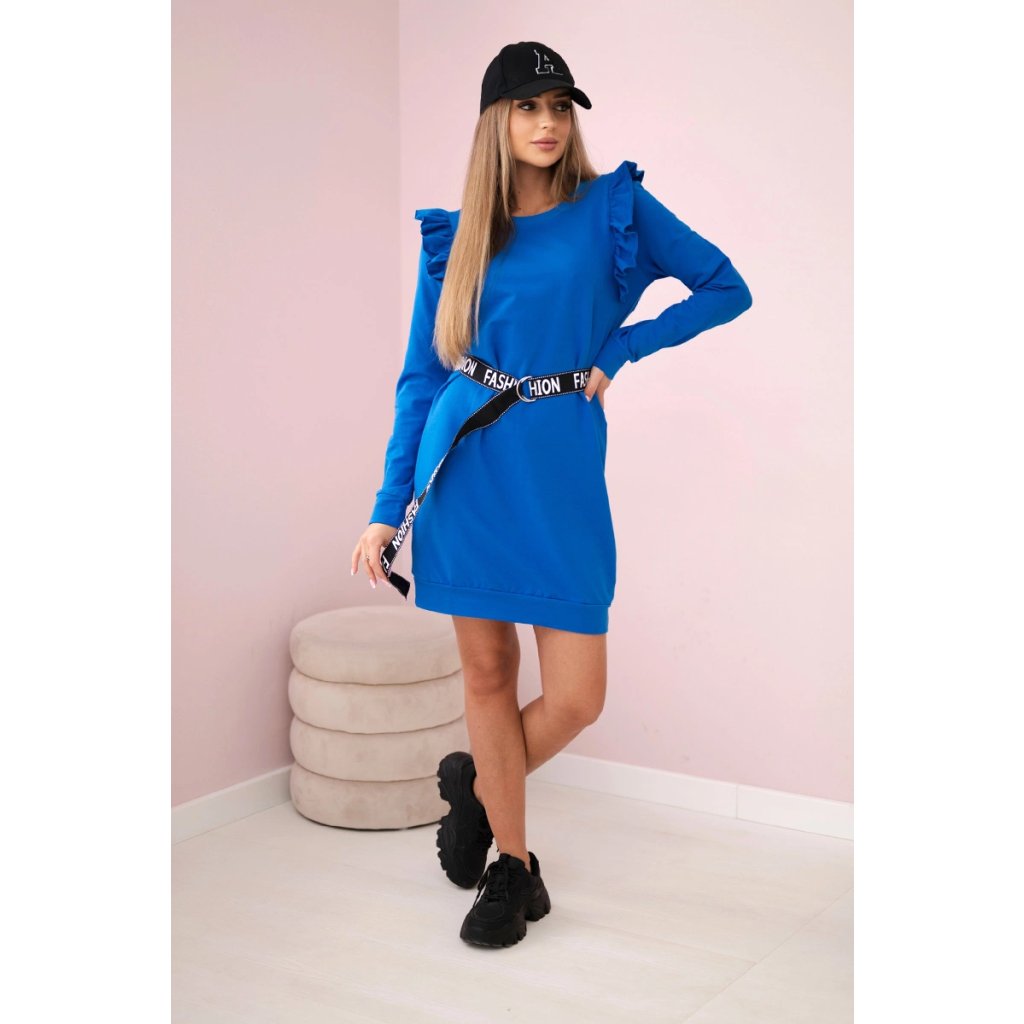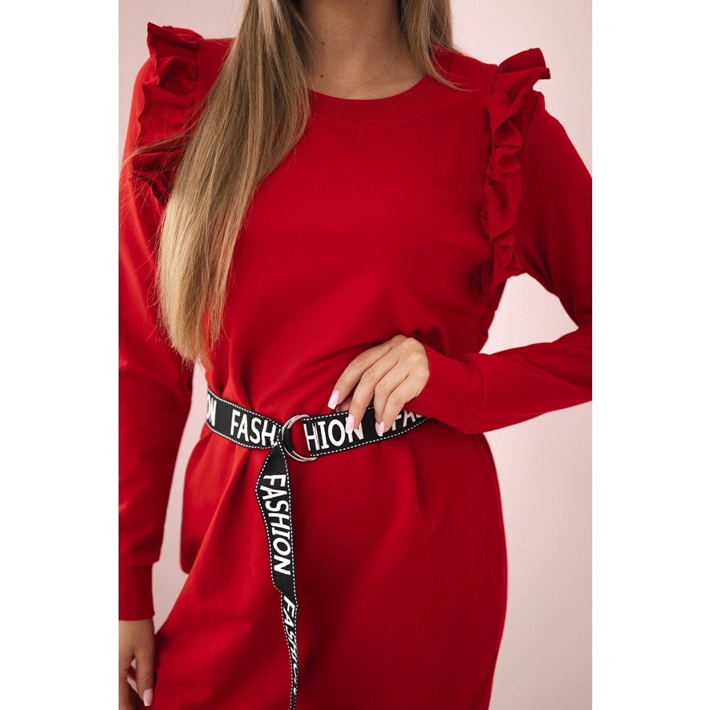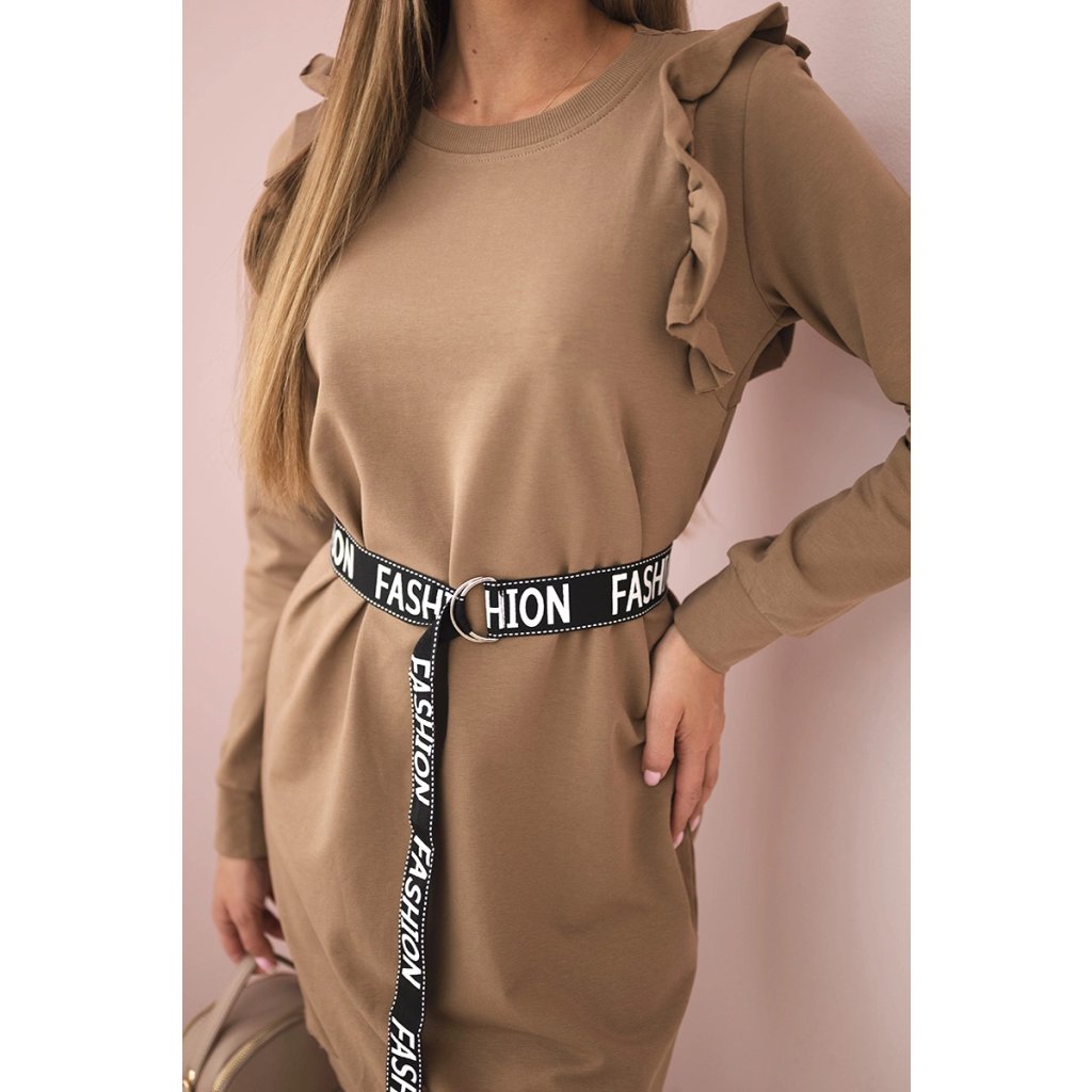 Tieto dámske šaty s volánmi a dekoratívnym opaskom FASHION sú ideálnou voľbou pre ženy, ktoré si cenia pohodlie a štýlový vzhľad na každý deň. Klasický strih s dlhým rukávom a okrúhlym výstrihom zaisťuje, že model je vhodný ako na prechádzku, tak do práce alebo na stretnutie s priateľmi. Vďaka efektným volánom na ramenách a priloženému opasku získava celok módny, dievčenský charakter. Vysoký podiel bavlny v zložení zaisťuje, že materiál je mäkký a príjemný na dotyk, a prímes elastanu poskytuje voľnosť pohybu. Je to skvelá voľba pre dámy, ktoré hľadajú univerzálne a pohodlné šaty na rôzne príležitosti.