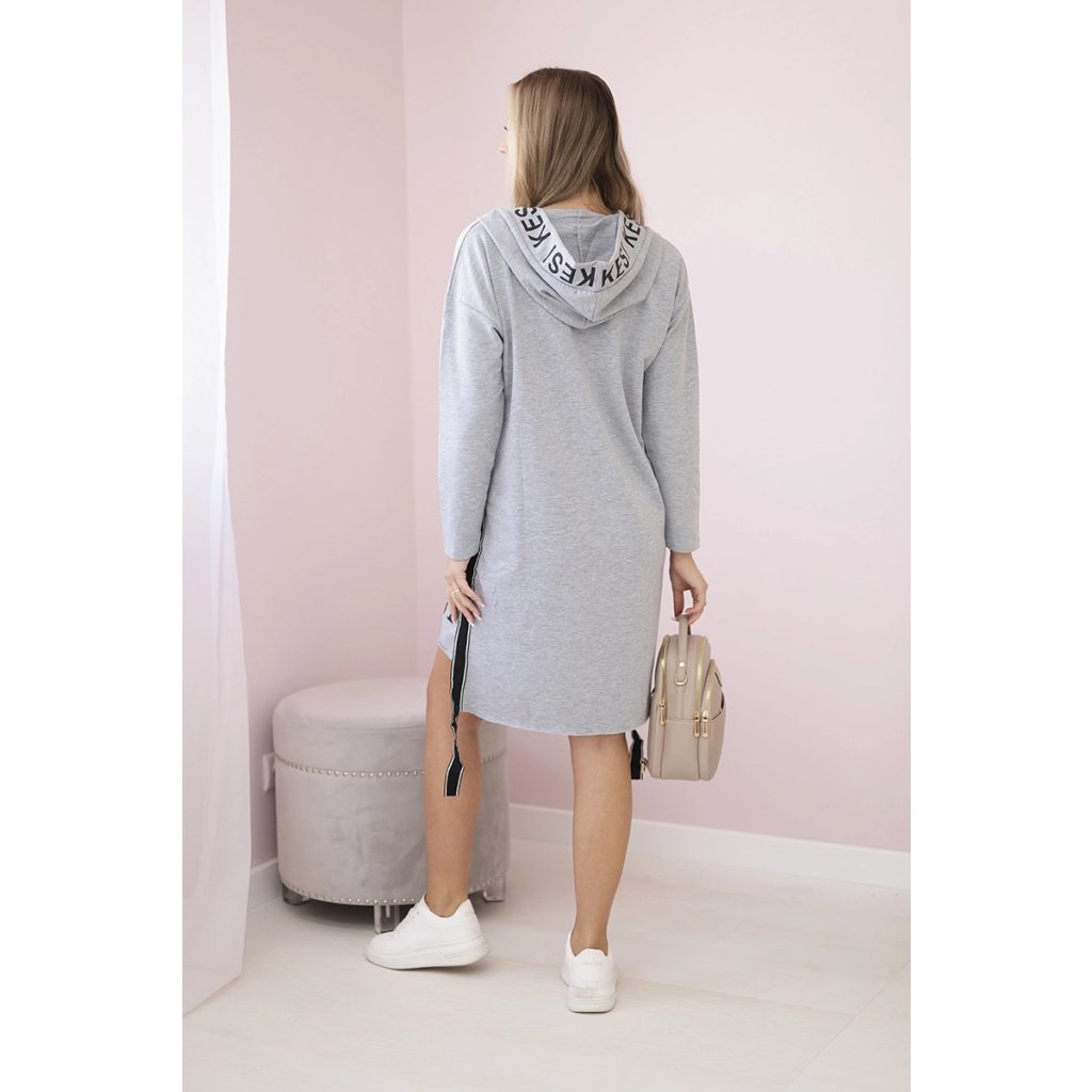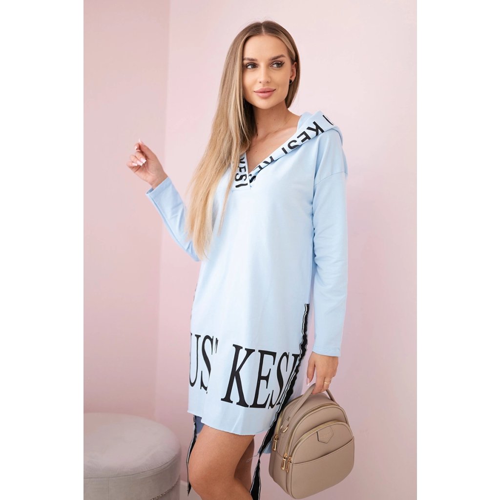 Predstavujeme vám pohodlné šaty. Šaty s kapucňou a potlačou. Potlač na prednej strane a na kapucni, šaty majú dlhší zadný diel. Ozdobné pásiky na bokoch. Šaty sú vyrobené z kvalitného materiálu. Veľkosť je univerzálna a vyhovuje dámam, ktoré nosia veľkosť S, M alebo L.