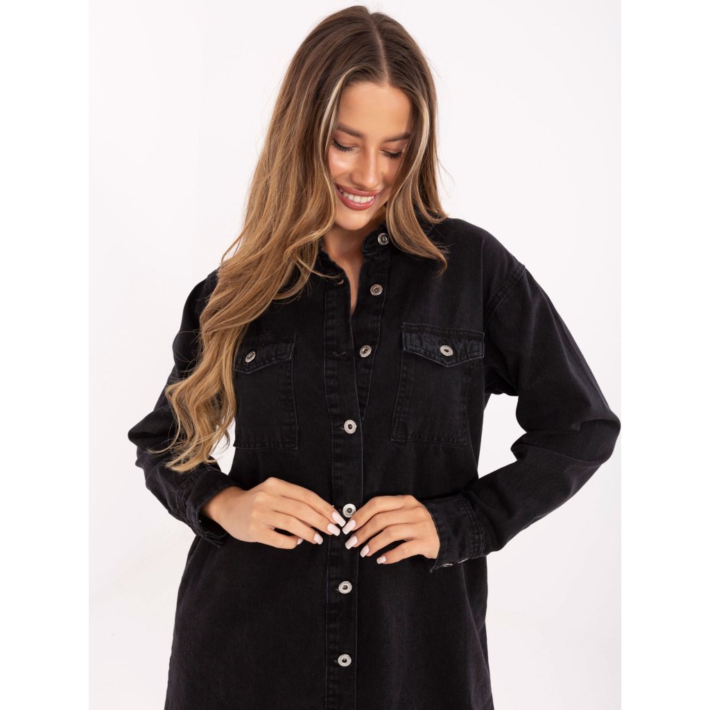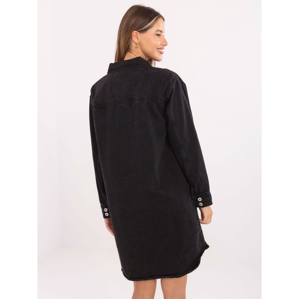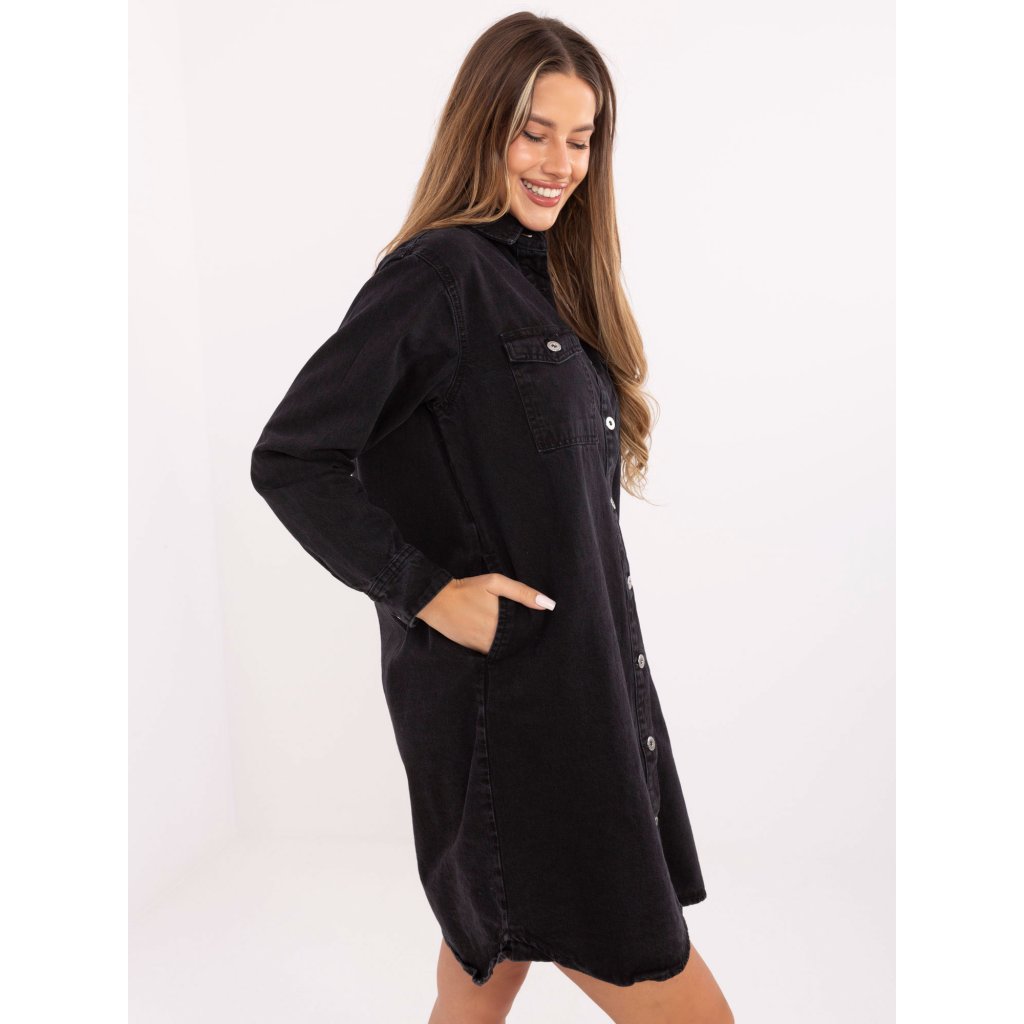 Čierne džínsové šaty s gombíkmiPrevažujúci vzor: jednofarebný