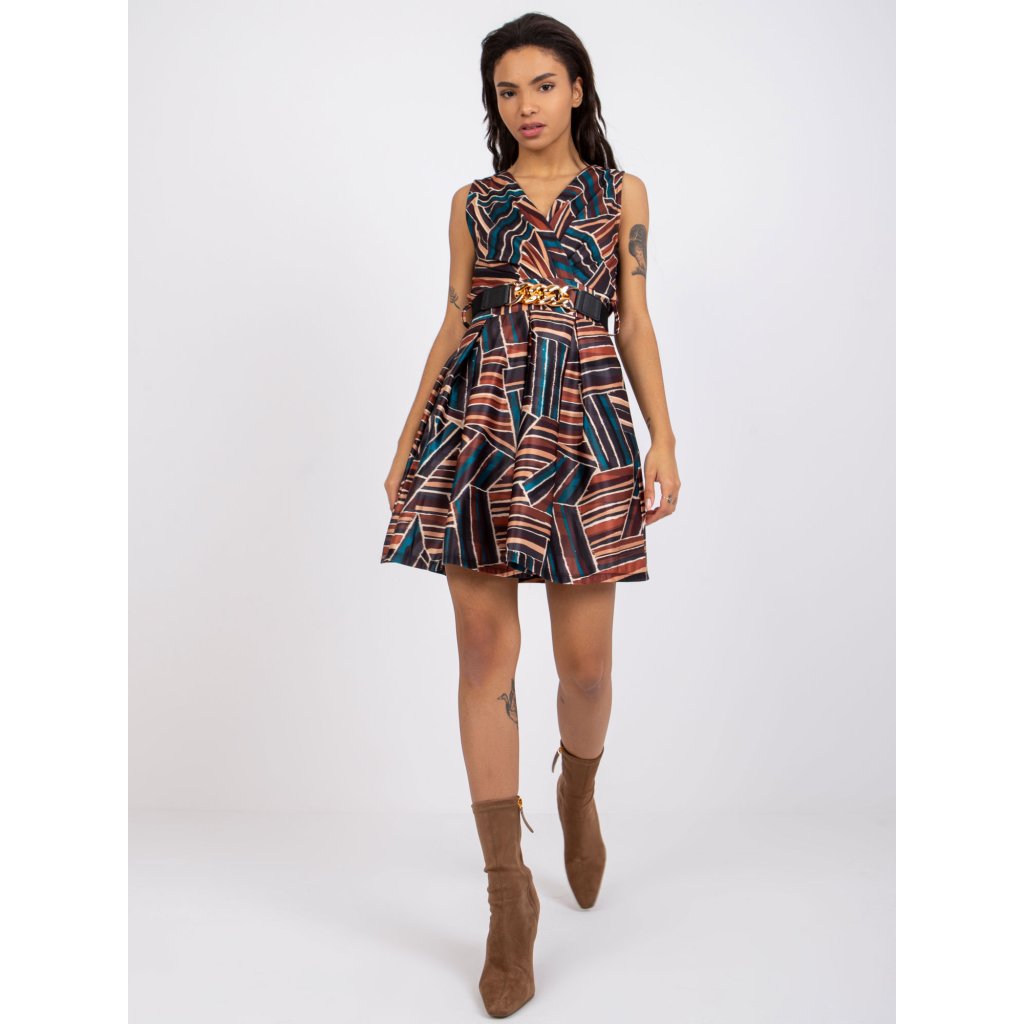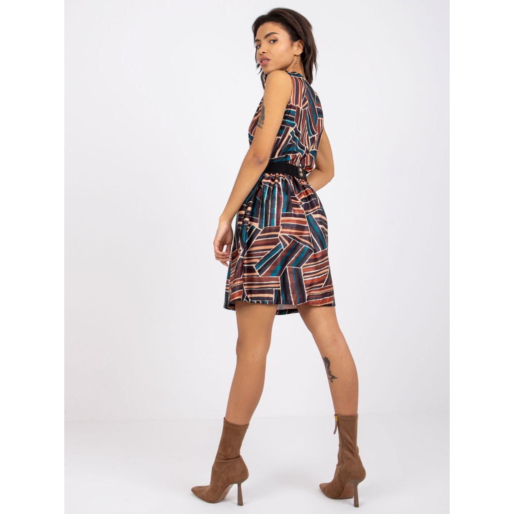 Dámske šaty s opaskom sú pohodlnou a všestrannou voľbou. Vyrobené z mäkkého a pružného materiálu, ktorý vám poskytne pohodlie pri nosení.. Model sa v spodnej časti mierne rozširuje, čo siluete dodáva ľahkosť. Tento štýlový kúsok šatníka sa bude hodiť v rôznych situáciách - v práci, na stretnutie s priateľmi alebo na nákupy. Vďaka drobnej potlači získate módny a elegantný charakter. Pridajte sandále na vysokom podpätku a nákupnú tašku a môžete vyraziť!Zloženie materiálu: 95 % polyester, 5 % elastan