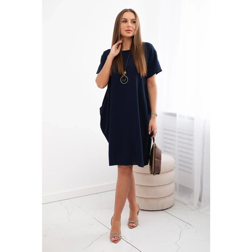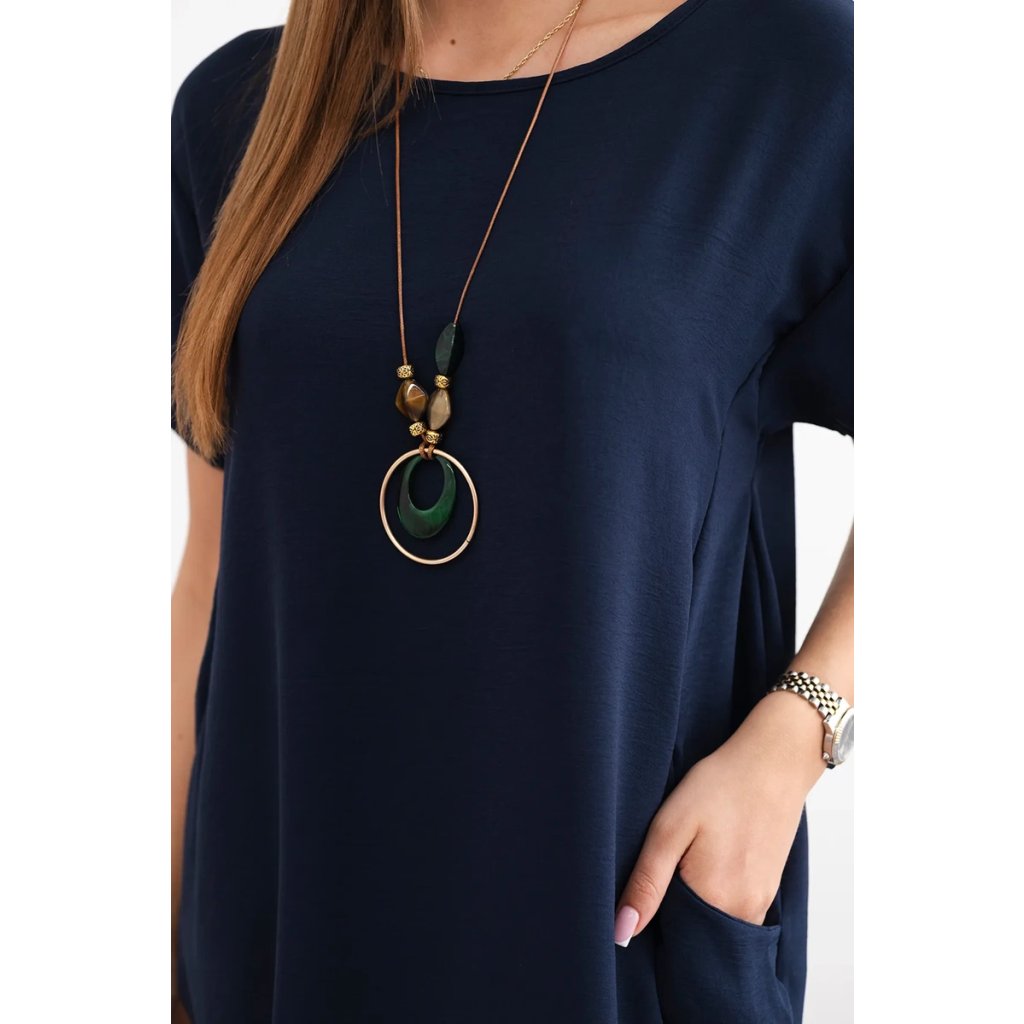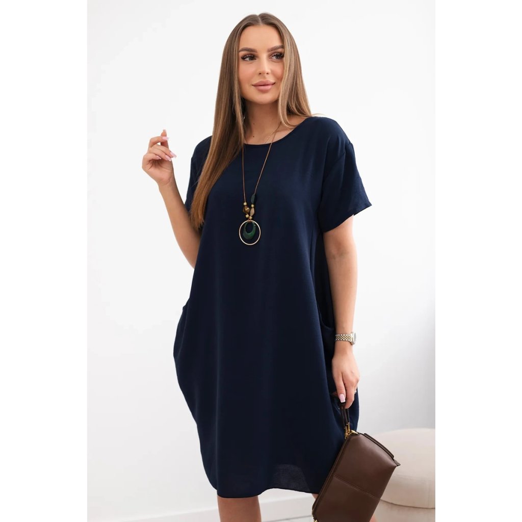Šaty s vreckami a príveskom námornícka modrá