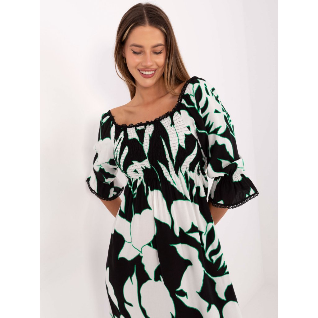 Modelka má na sebe veľkosť S/M. Miery modelky: výška 176 cm, obvod hrudníka 90 cm, pás 62 cm, boky 94 cm.