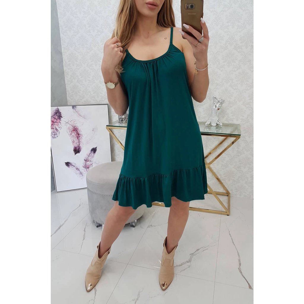Predstavujeme vám módne šaty. Šaty s tenkými ramienkami, ktoré sa dajú skrátiť zaviazaním. Šaty majú v spodnej časti volánik. Šaty sú vyrobené z kvalitného materiálu. Veľkosť je univerzálna a vyhovuje dámam, ktoré nosia veľkosť S, M alebo L.