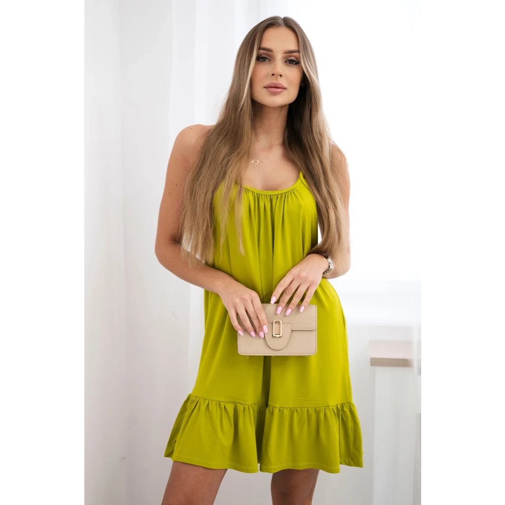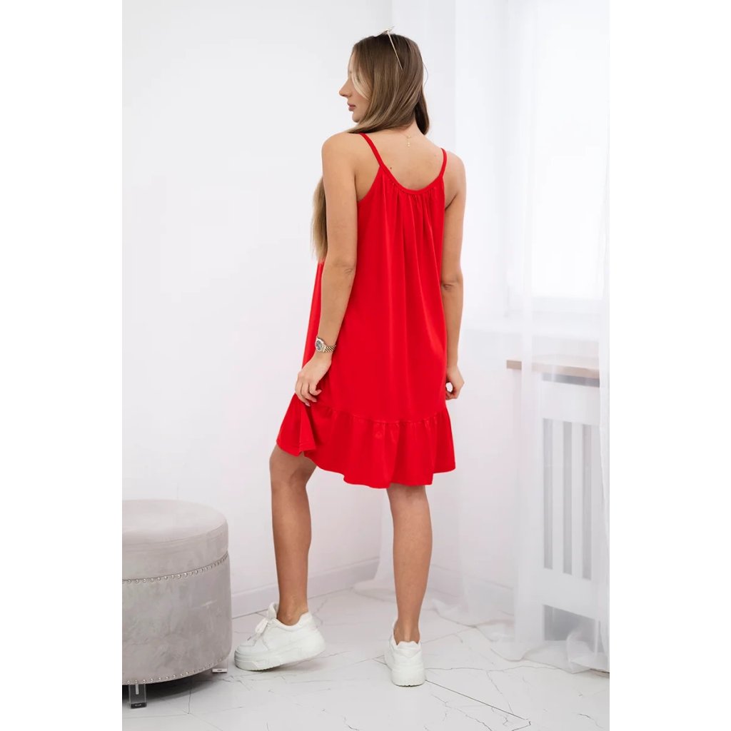 Predstavujeme vám módne šaty. Šaty s tenkými ramienkami, ktoré sa dajú skrátiť zaviazaním. Šaty majú v spodnej časti volánik. Šaty sú vyrobené z kvalitného materiálu. Veľkosť je univerzálna a vyhovuje dámam, ktoré nosia veľkosť S, M alebo L.