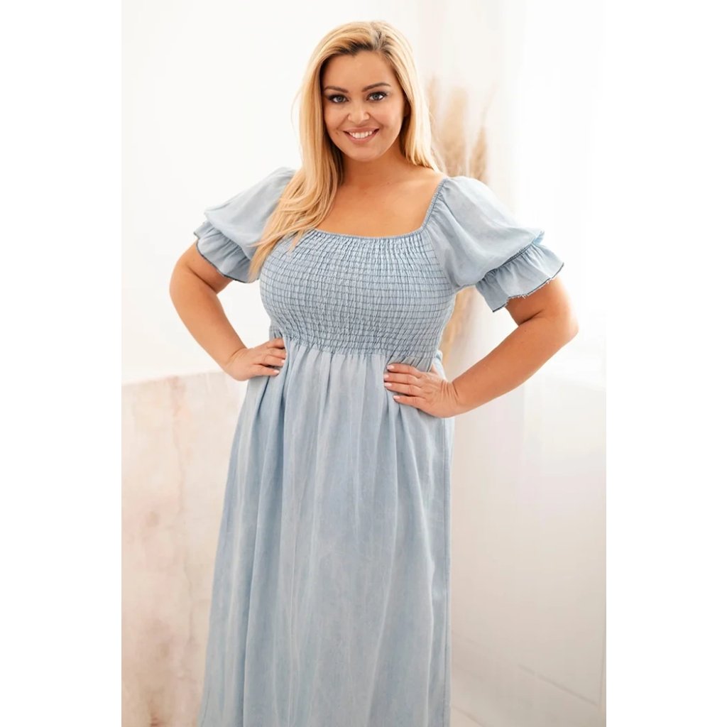 Štýlové dámske šaty Plus Size z príjemného tencelu sú ideálnou voľbou pre ženy, ktoré oceňujú pohodlie, ženský štýl a módne detaily. Dĺžka maxi jemne zoštíhľuje postavu a elastický horný diel s riasením sa prispôsobí rôznym tvarom a zaisťuje maximálne pohodlie pri nosení.