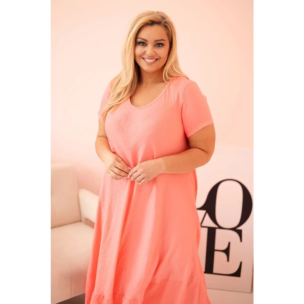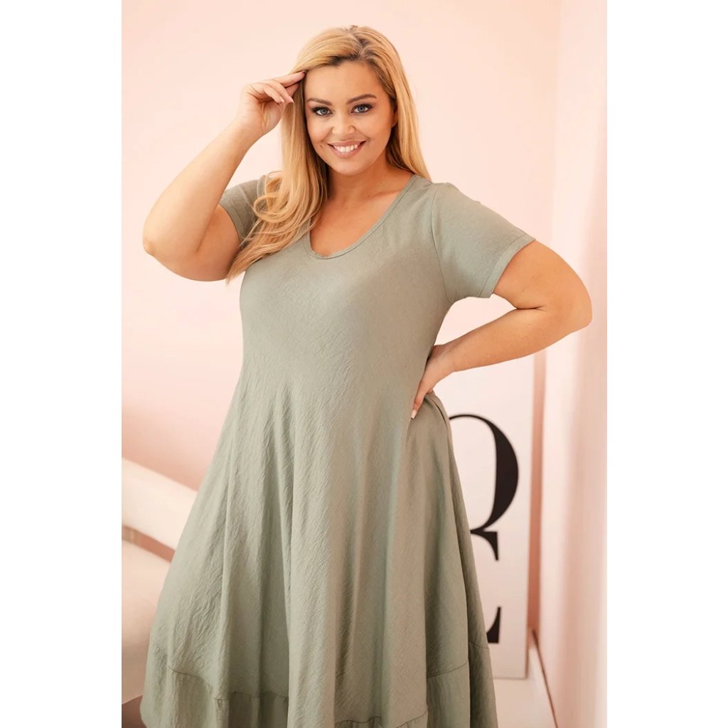 Šaty plus size 21682 s krátkym rukávom a volánom