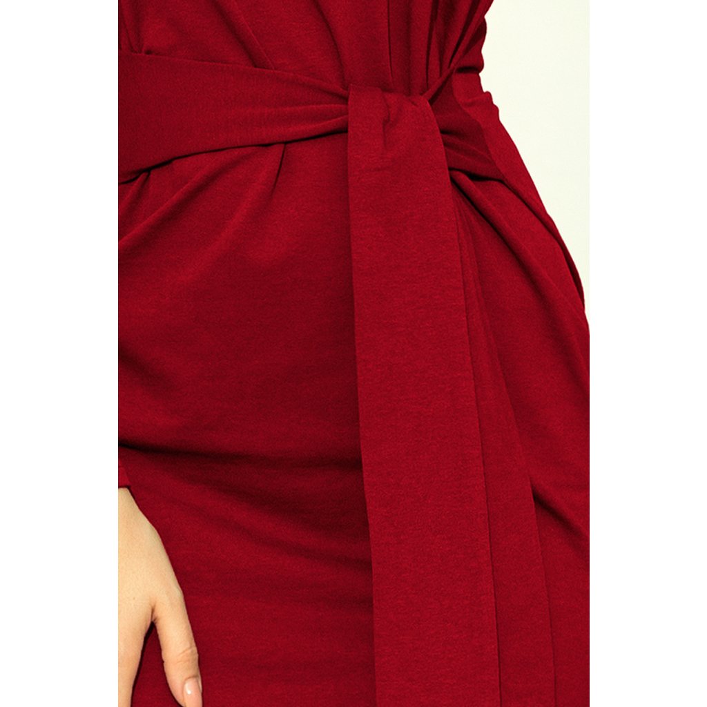 Šaty so širokým opaskom - burgundskej farby 209-3