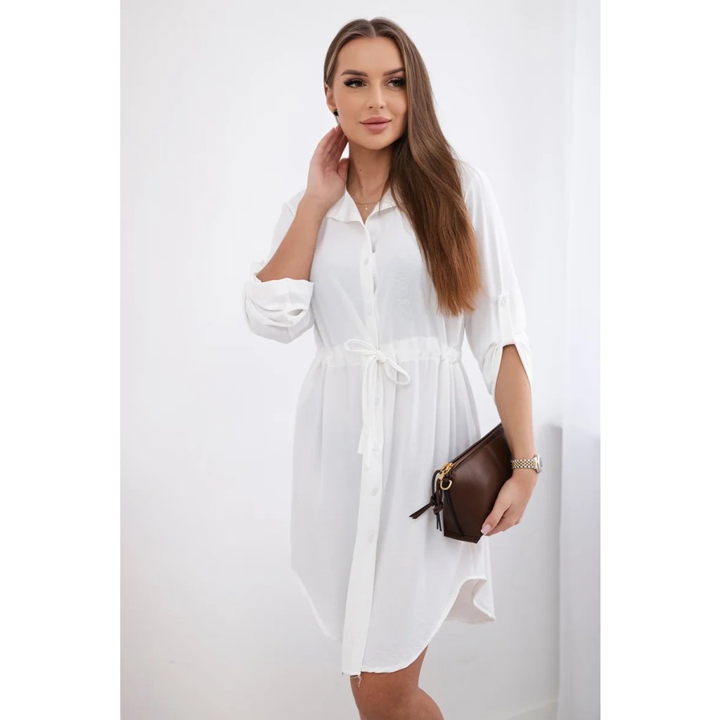Šaty IT-16 so zapínaním na gombíky a zaväzovaním v páse
