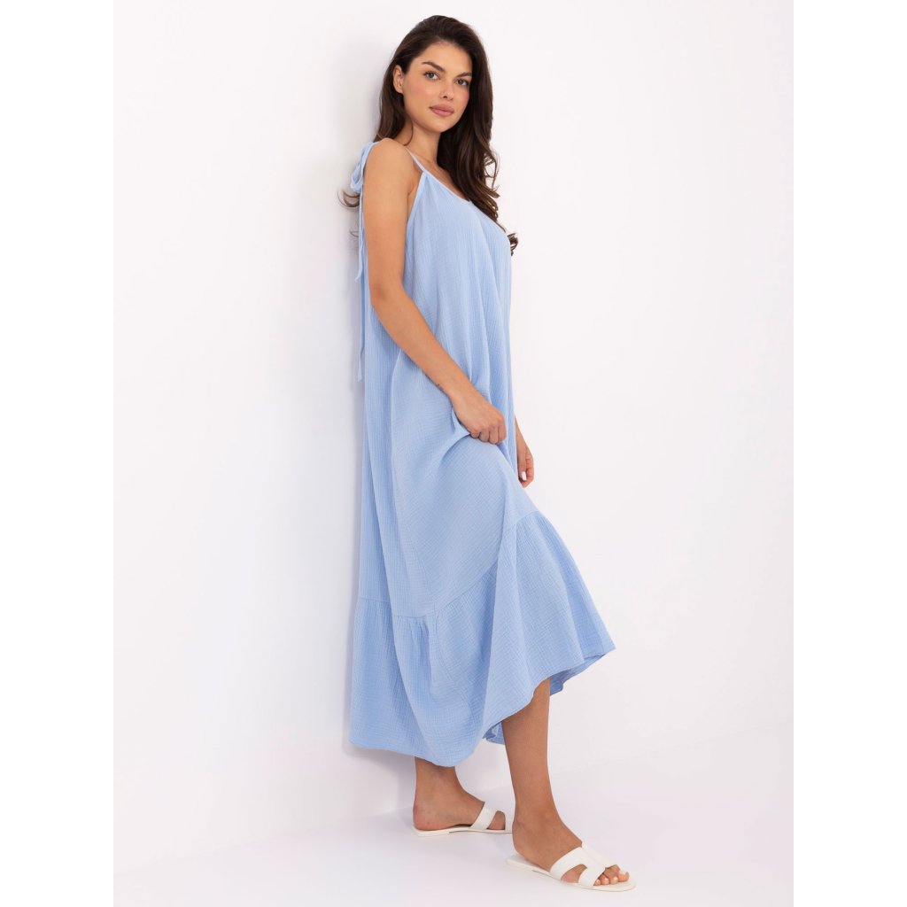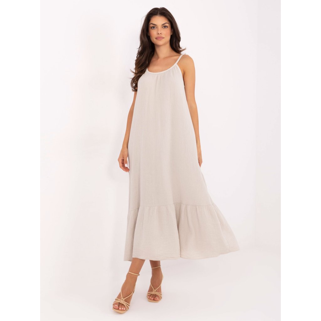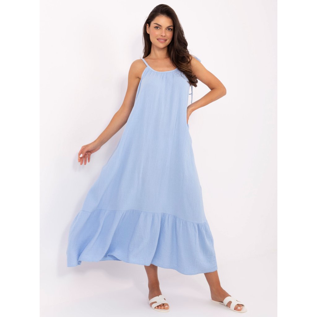 Miery šiat vo veľkosti jedna: podpazušie - 59 cm, pás - 63 cm, boky - 66 cm, celková dĺžka - 119 cm (bez ramienok), dĺžka ramienok - 82 cm.