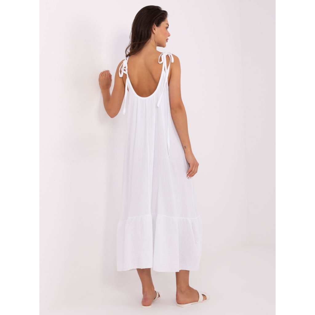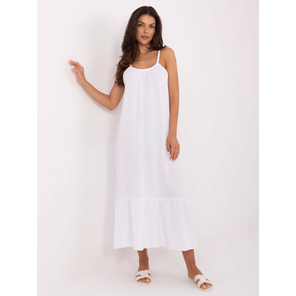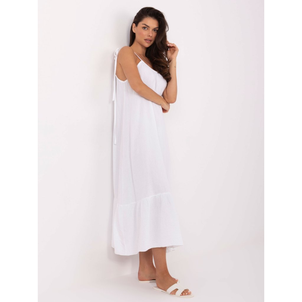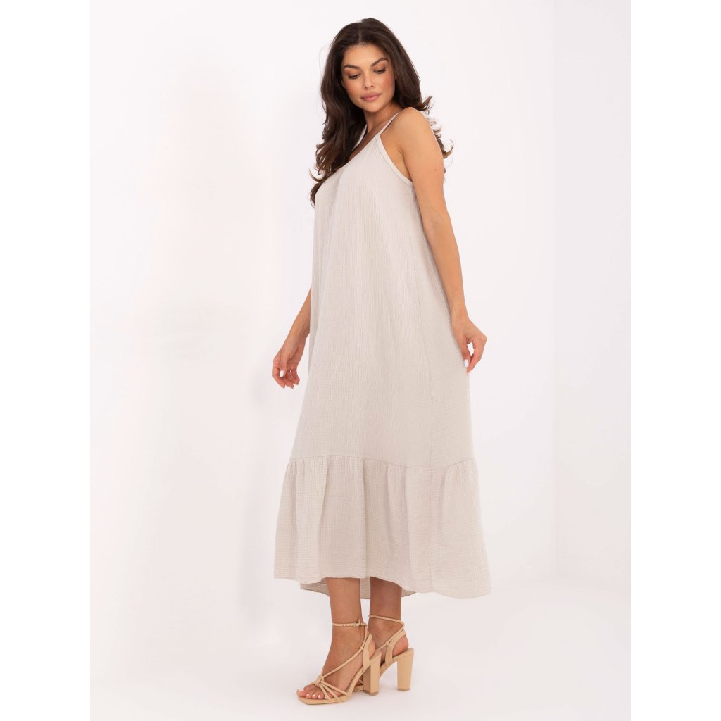 Miery šiat vo veľkosti jedna: podpazušie - 59 cm, pás - 63 cm, boky - 66 cm, celková dĺžka - 119 cm (bez ramienok), dĺžka ramienok - 82 cm.