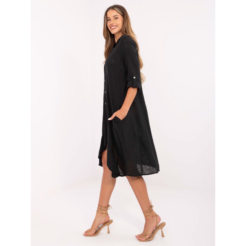 Rozmery šiat vo veľkosti S merané v plochom stave: šírka v podpazuší - 52 cm, dĺžka rukávu - 49 cm, šírka pása - 54 cm, šírka bokov - 62 cm, celková dĺžka - 89 cm (predná strana), celková dĺžka - 108 cm (zadná strana).