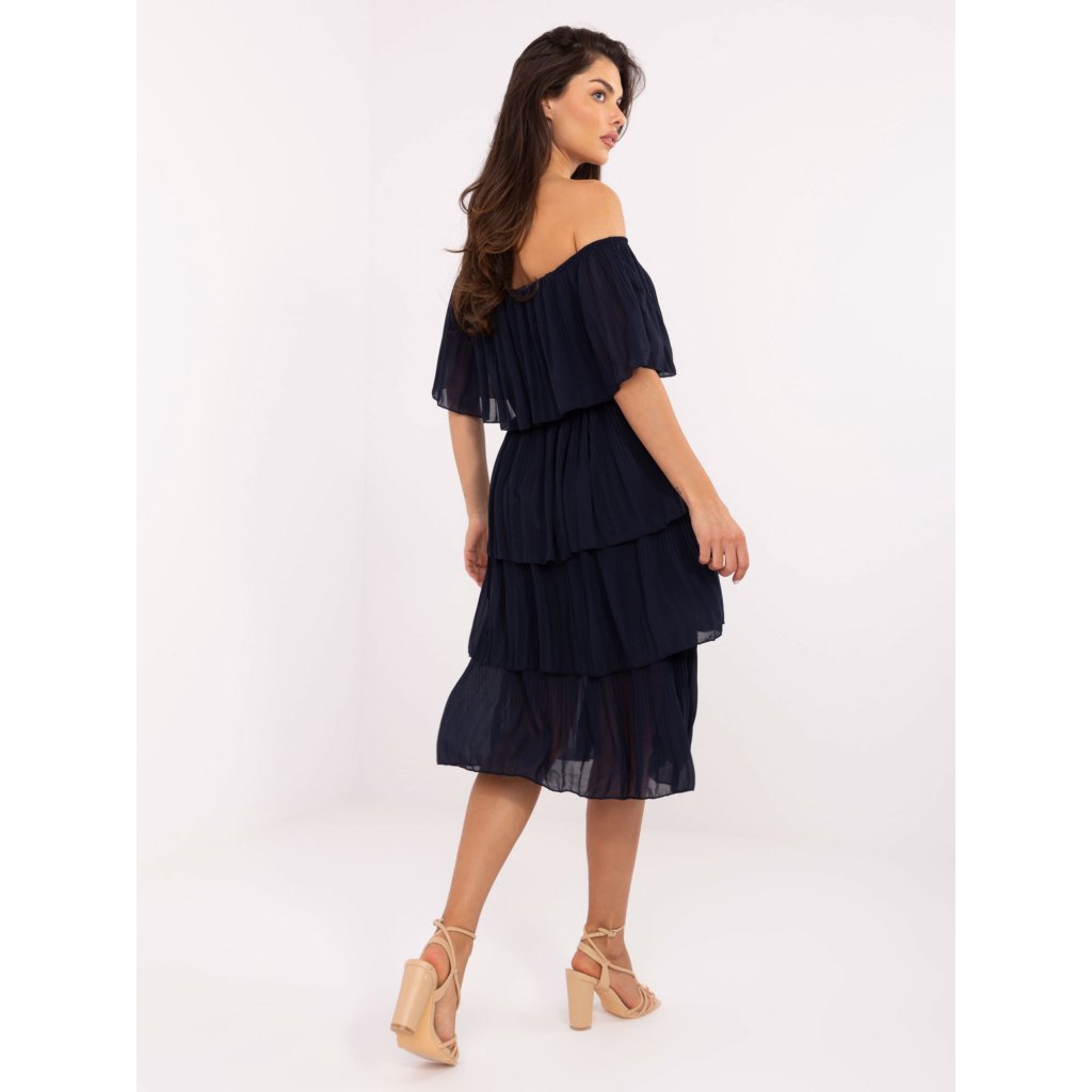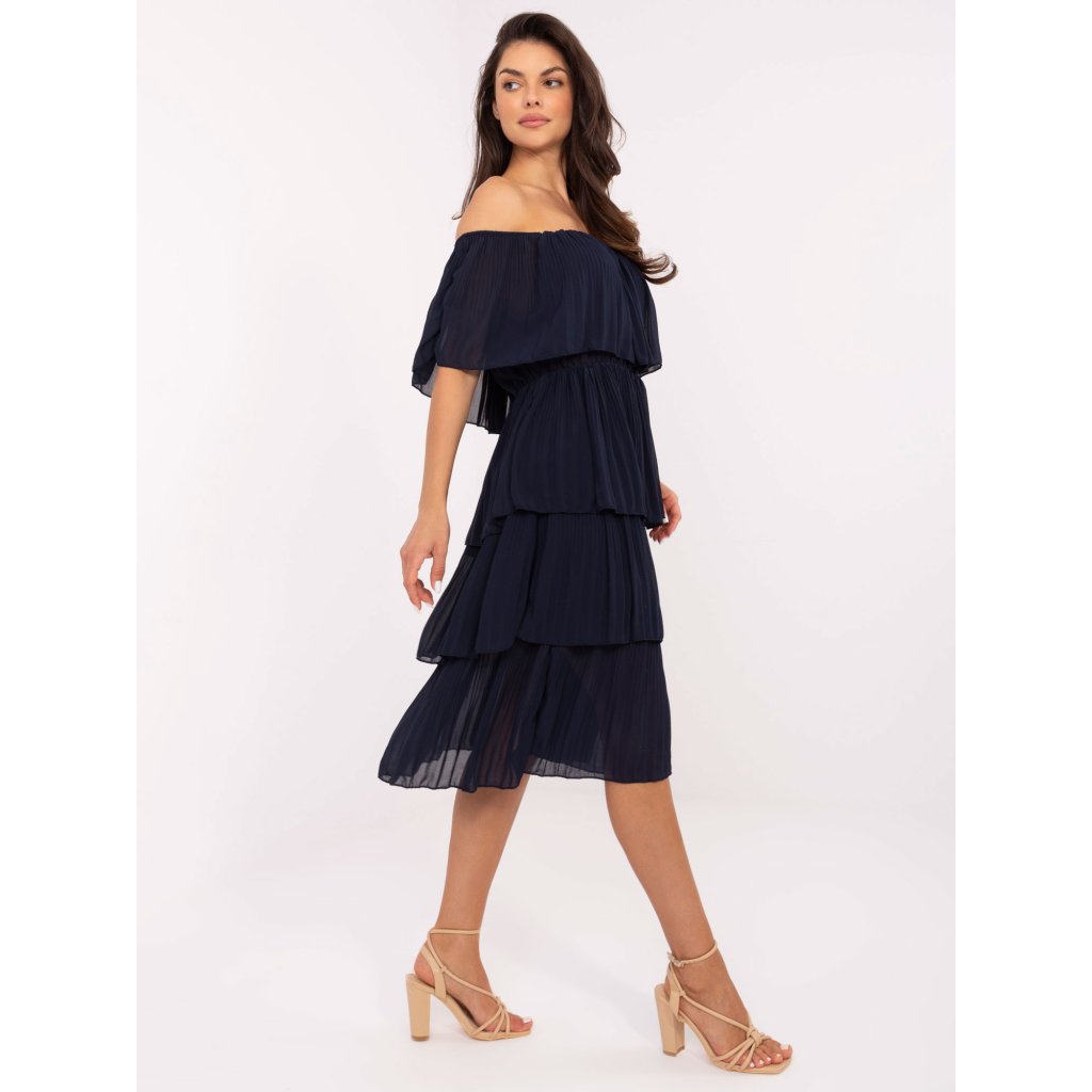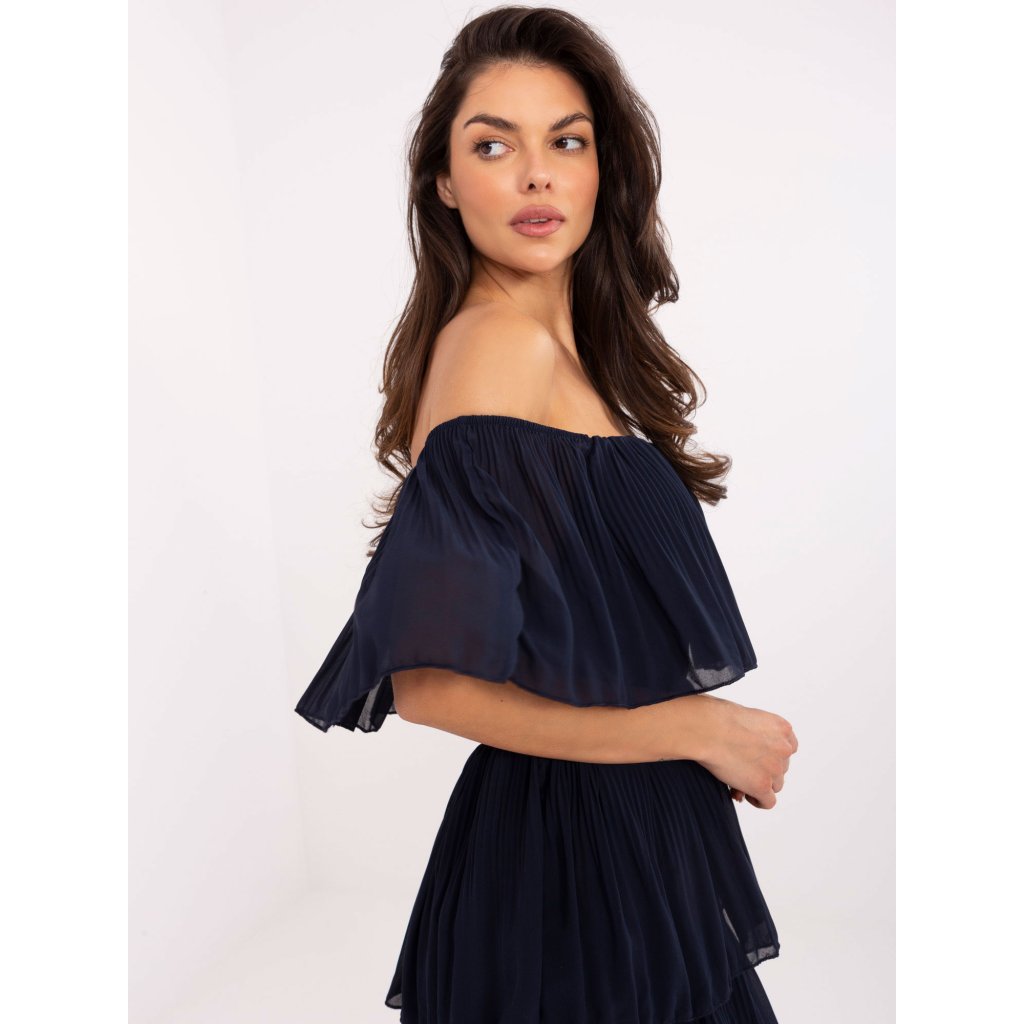 Modelka má na sebe veľkosť 1. Miery modelky: výška 173 cm, obvod hrudníka 89 cm, pás 65 cm, boky 91 cm.