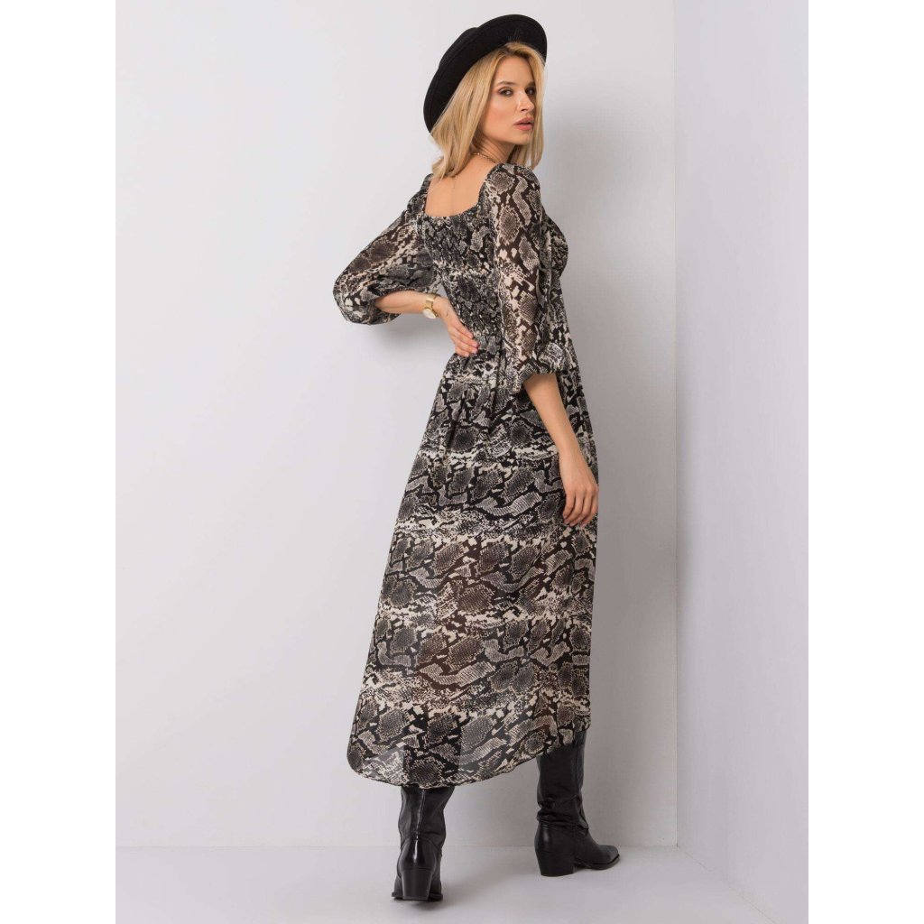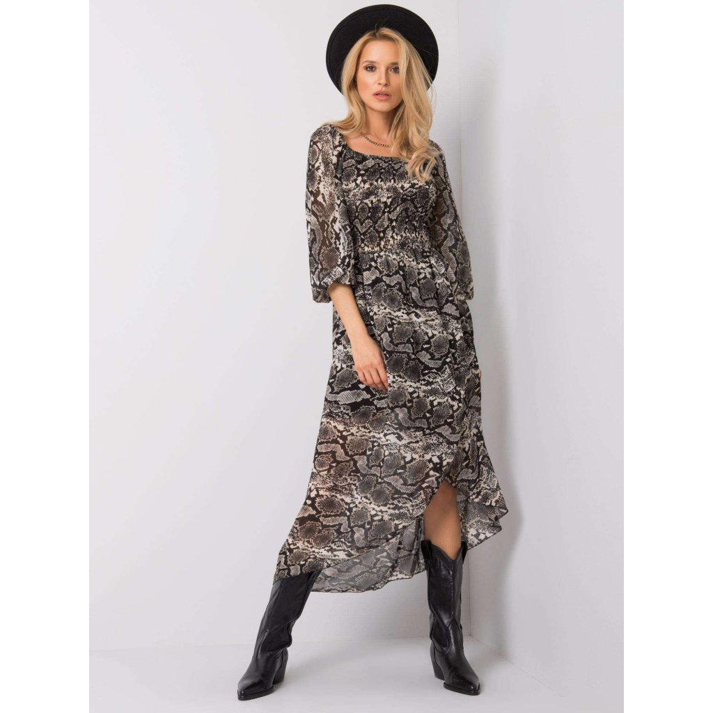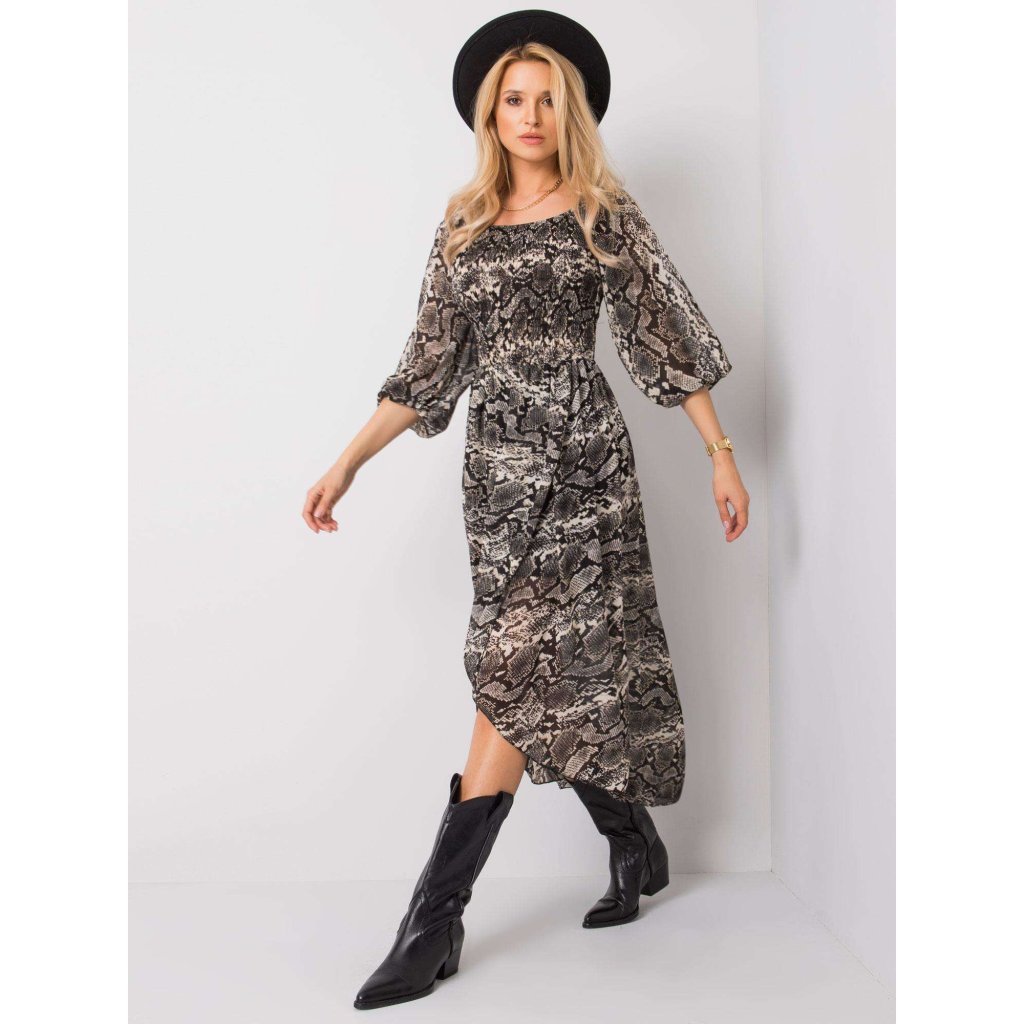 Čierno-béžové šaty OCH BELLA s hadou potlačou.