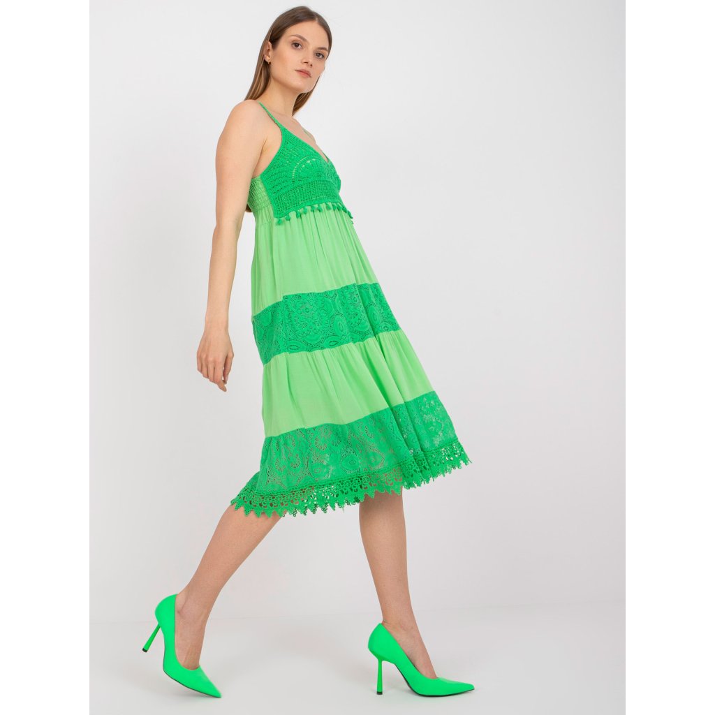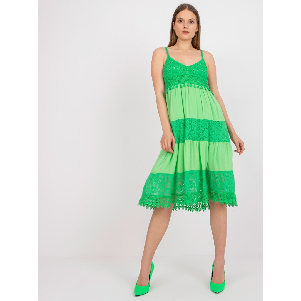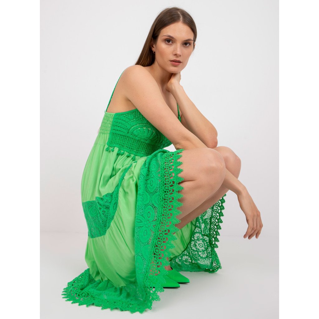 Modelka má na sebe veľkosť S. Rozmery modelu: výška 173 cm, hrudník 82 cm, pás 62 cm, boky 91 cm.