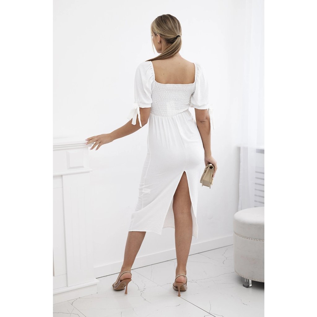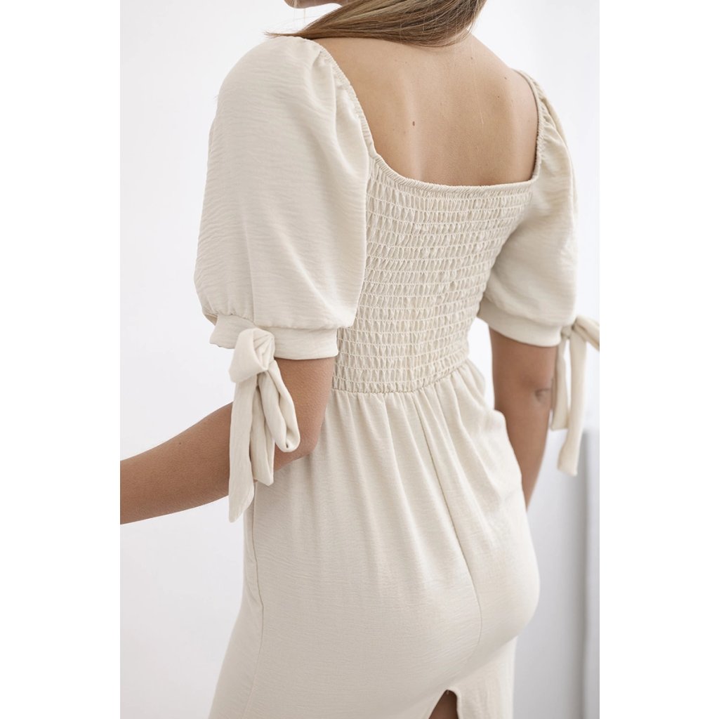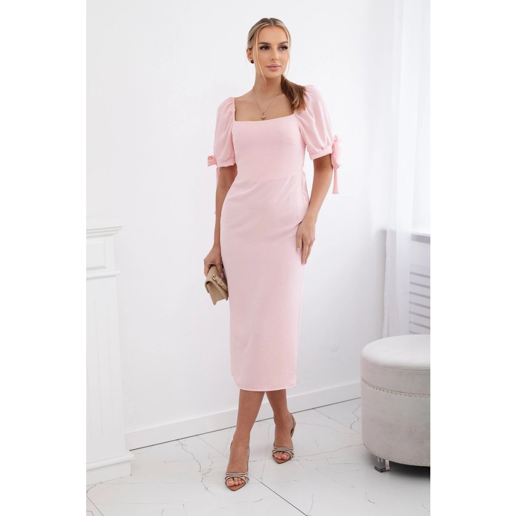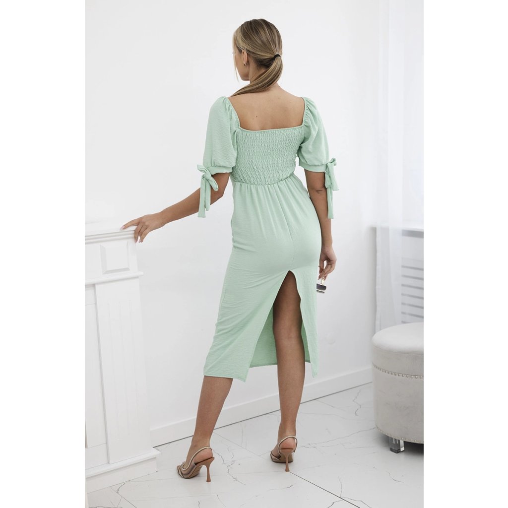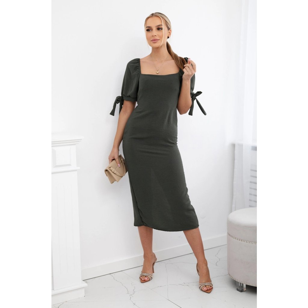 Šaty vzadu nariasené so zaväzovacími rukávmi khaki
