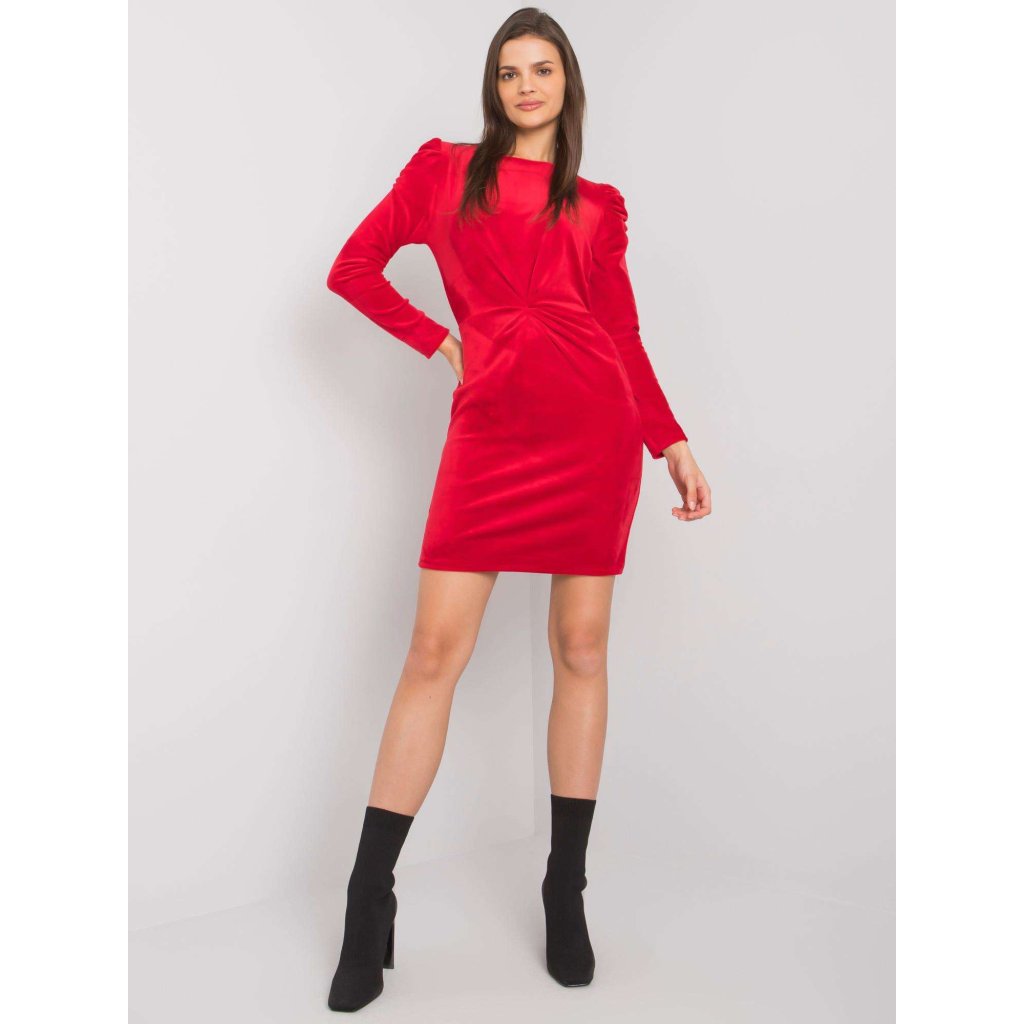RUE PARIS Červené vypasované zamatové šaty.
